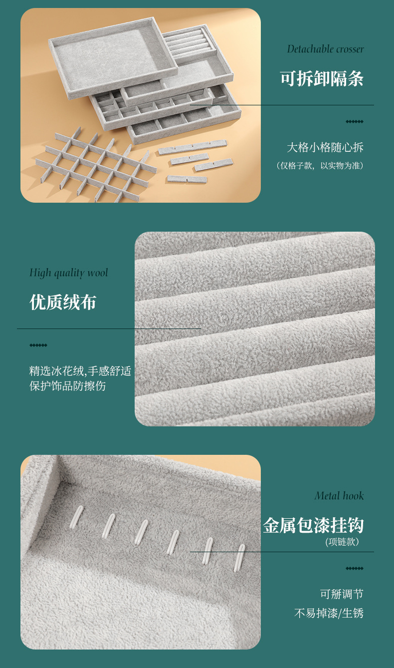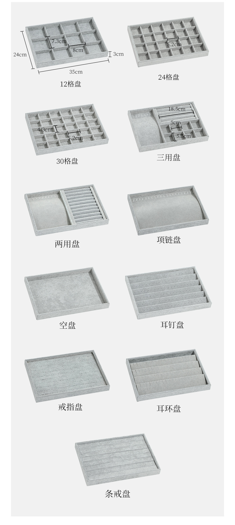 Grey flannel jewelry tray bracelet necklace plate ring earrings earrings display plate jewelry goods plate