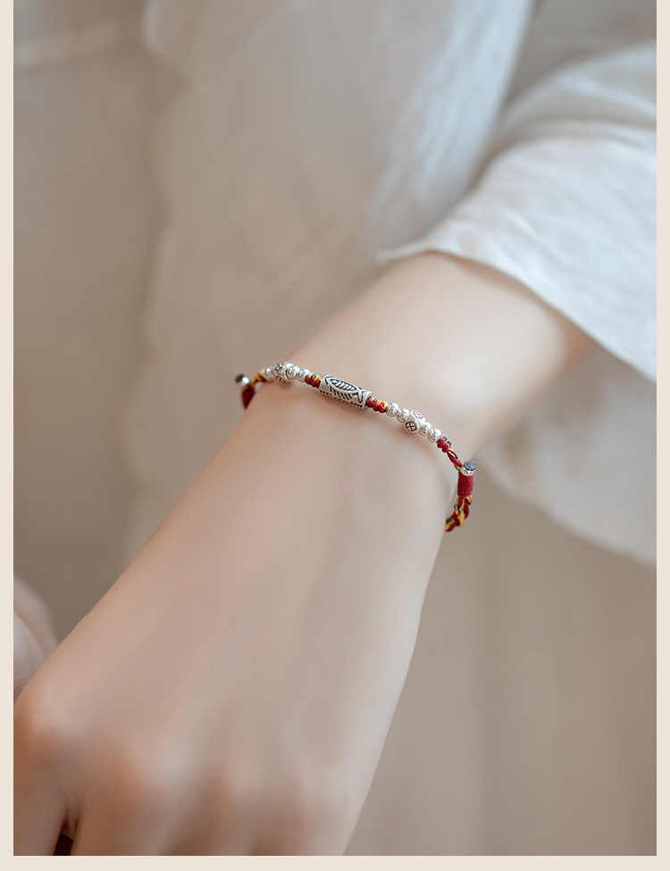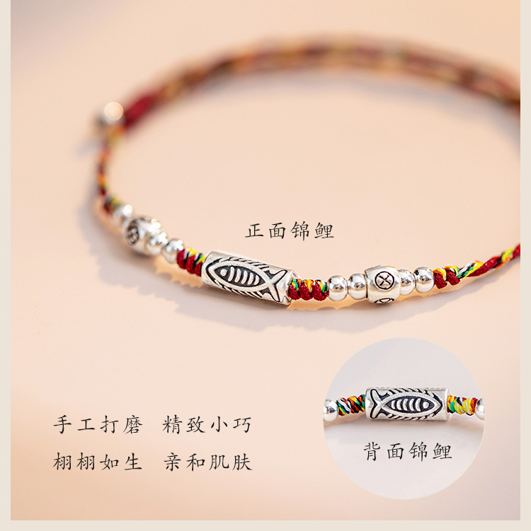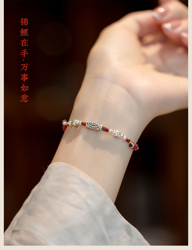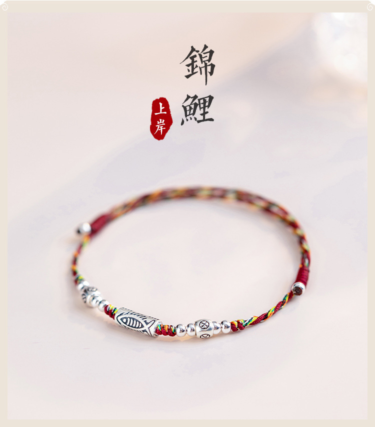 National Style Koi Exam Landing Bracelet for Women Autumn Red Rope Lucky Bracelet Colorful Rope Braided Hand Rope Gift for Women
