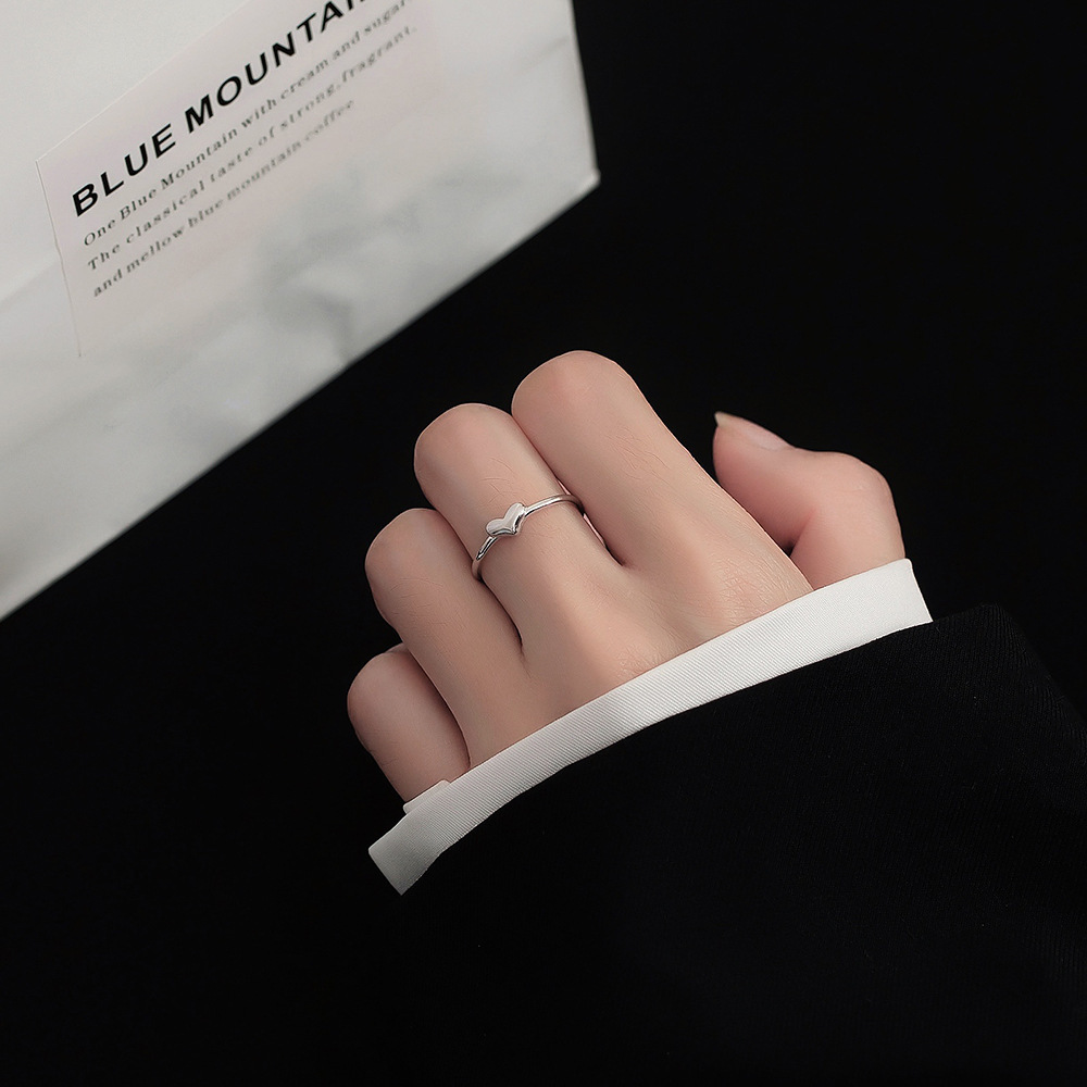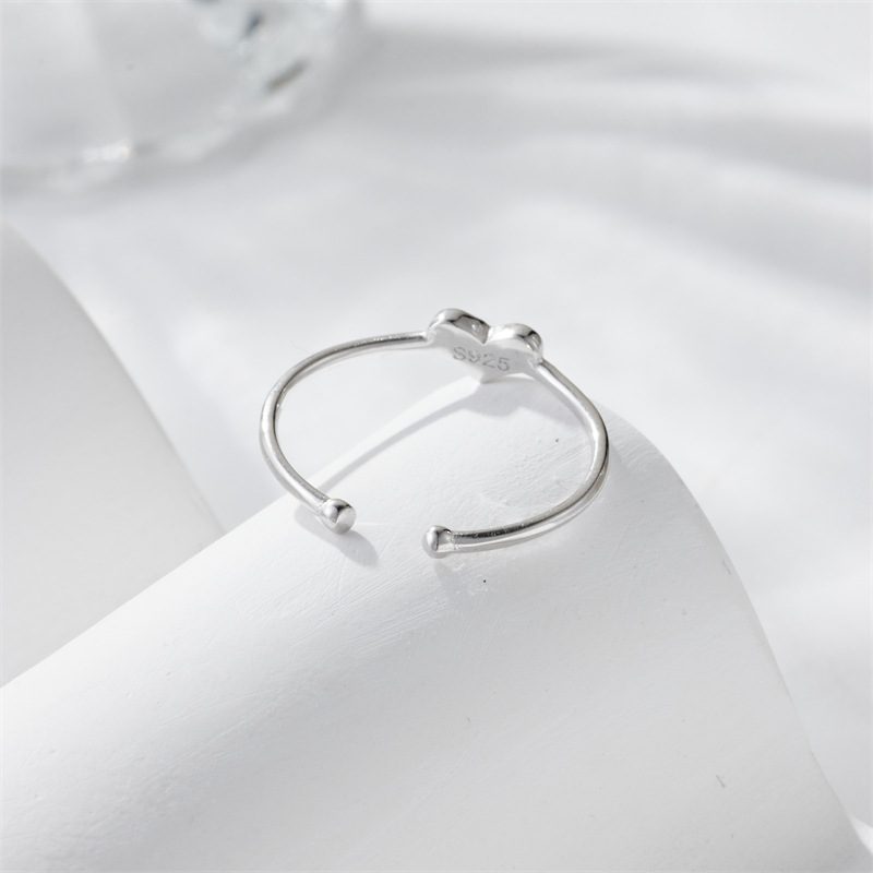 S925 Sterling Silver Heart Ring Adjustable Ring Simple Luxury Peach Heart Ring Sterling Silver Ring Silver Jewelry Adjustable Ring