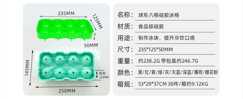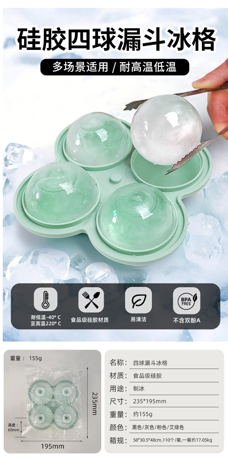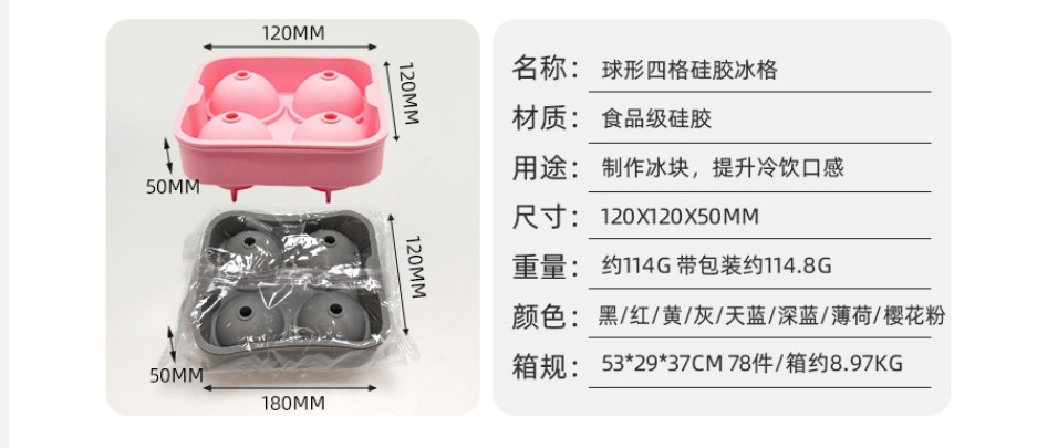 4球冰格 115g 120件/箱 49*43*38.5cm净重13.8kg 毛重14.68kg