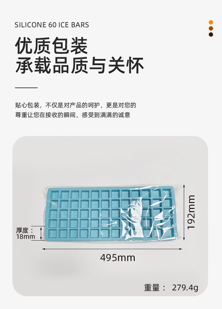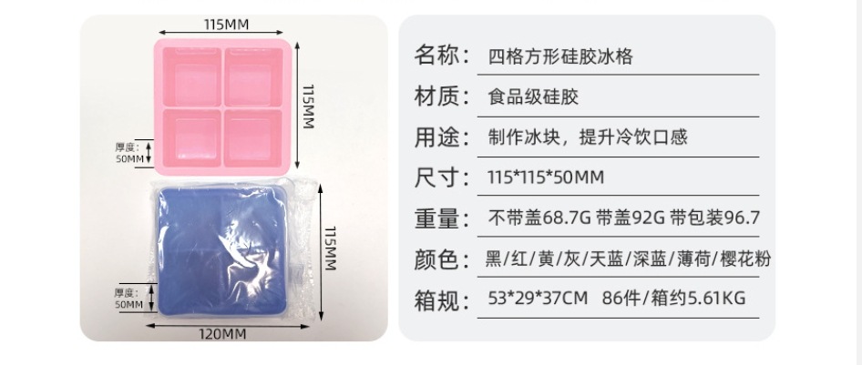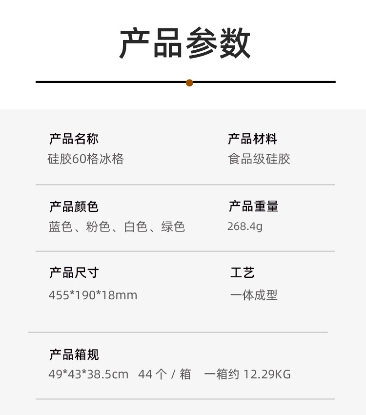 【装箱规格】4格冰格 65.3g 盖子22g 120件/箱49*43*38.5cm 净重10kg 毛重11.35kg