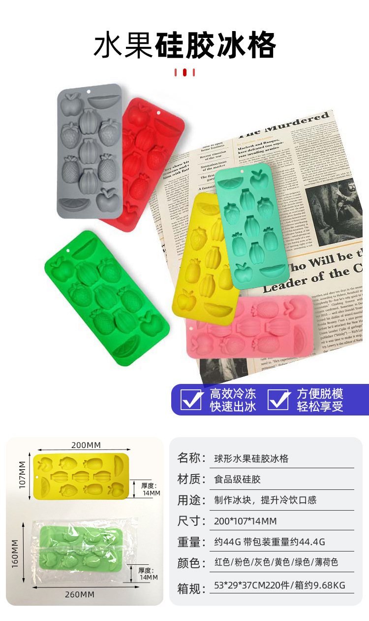 【适用范围】家用、商用冰格,环保无毒,具有易清洁,柔软,不变形,不粘模,防滑、防震、弹性、绝缘、抗撕程度、防褪色方面优良,寿命长的优点