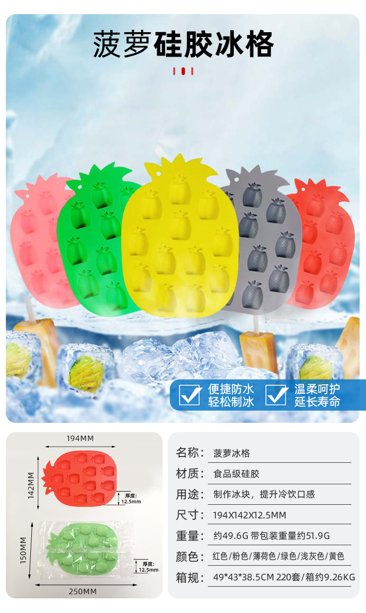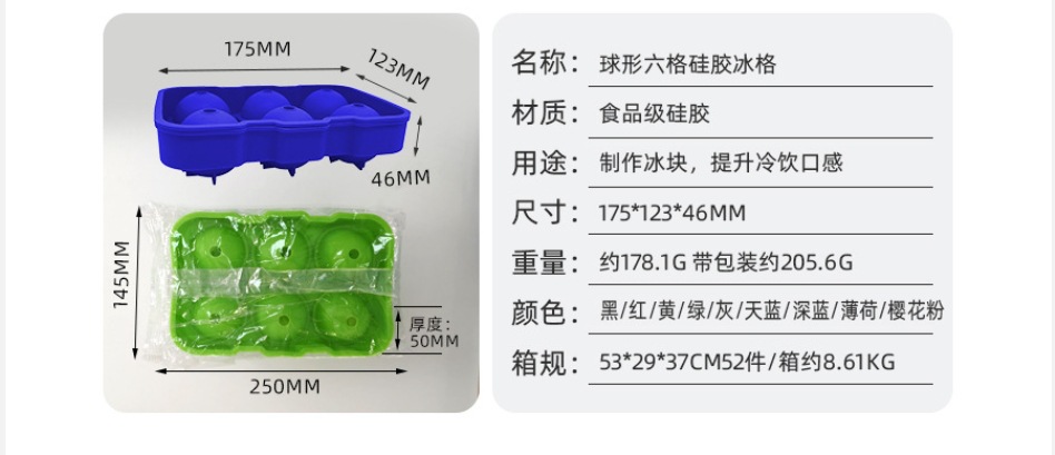 6球冰格 165.7g 74件/箱 49*43*38.5cm 净重12.26kg 毛重13.14kg
