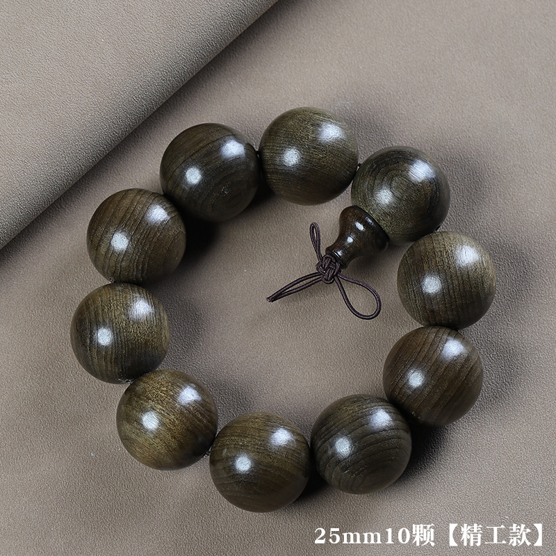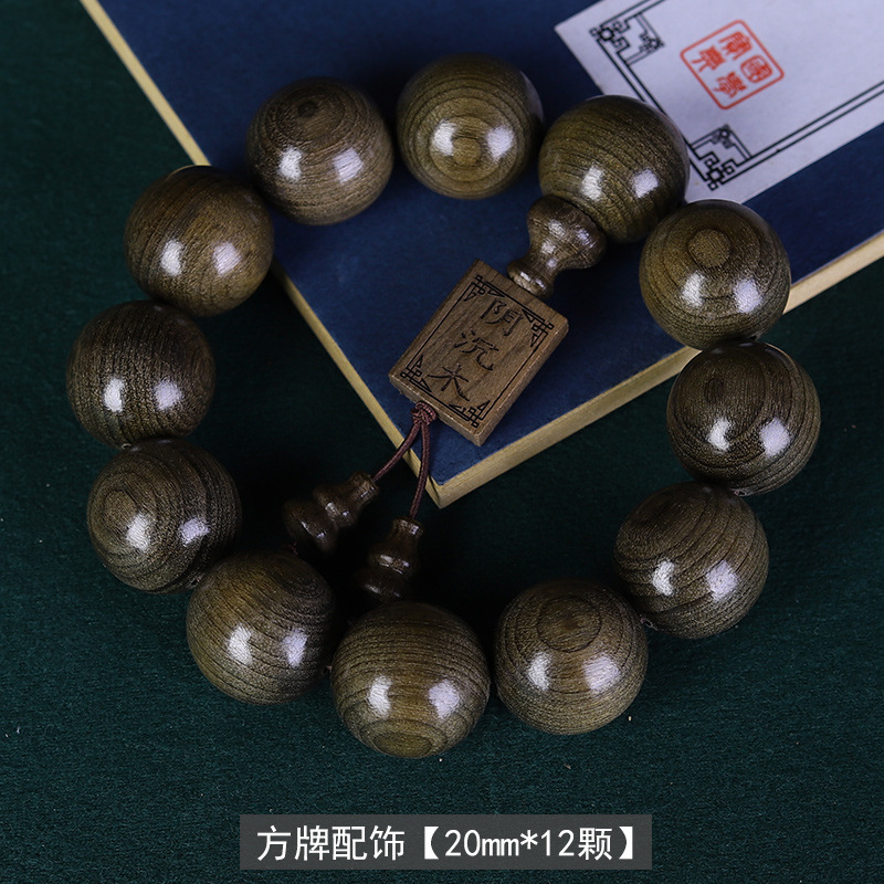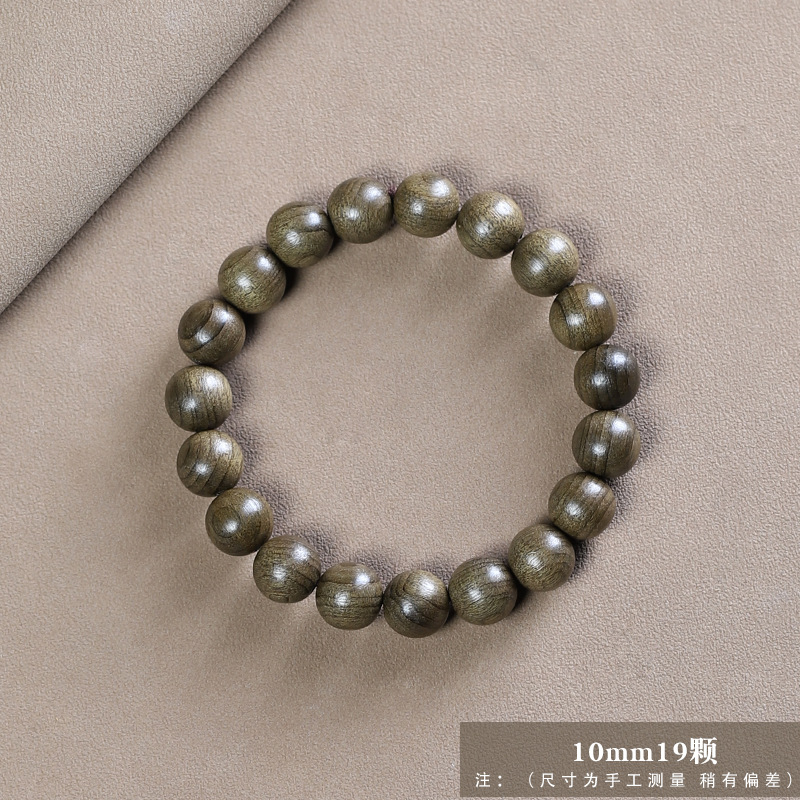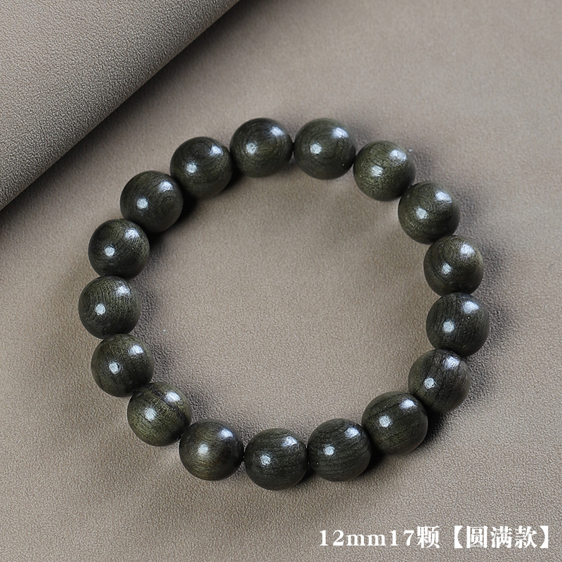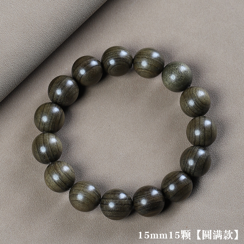 Golden Nanyin Sunken Wood Bracelet Men's Buddha Beads 20 Green Material Full Water Ripple Old Material Smooth Pattern Cat Eye Toy Women's Bracelet