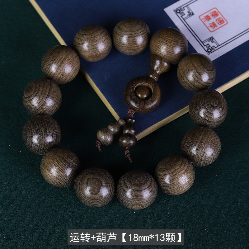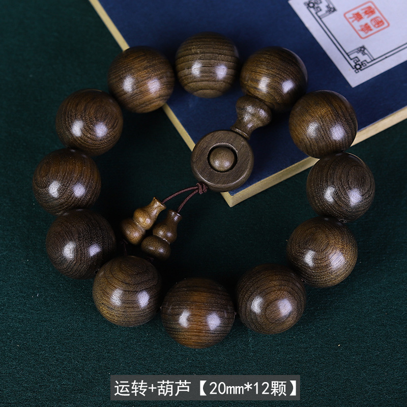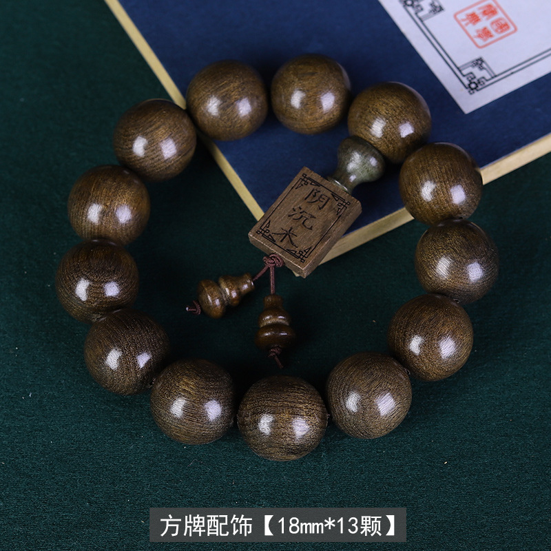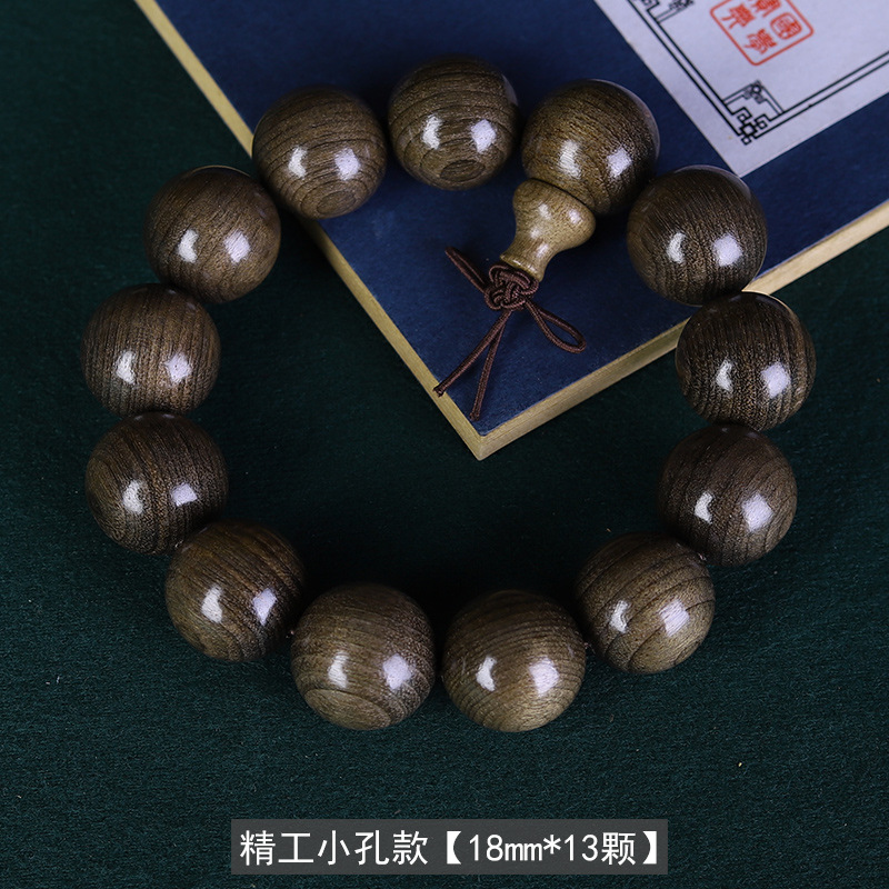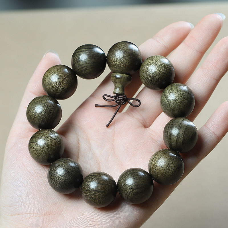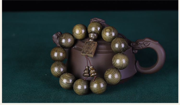 Golden Nanyin Sunken Wood Bracelet Men's Buddha Beads 20 Green Material Full Water Ripple Old Material Smooth Pattern Cat Eye Toy Women's Bracelet