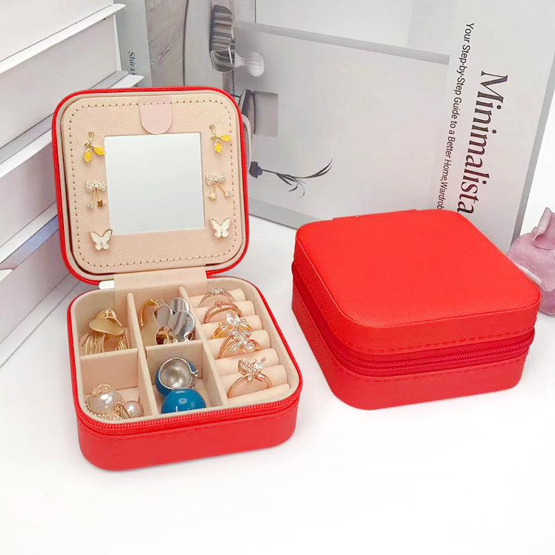 Specification model: Pu mirror gold zipper rose red-white velvet inside; 10*10*5