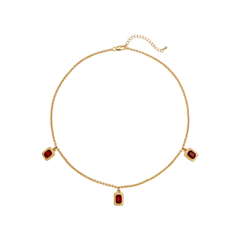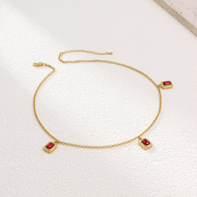 Necklace French retro style ruby inlaid necklace niche designer style clavicle chain stackable necklace wholesale