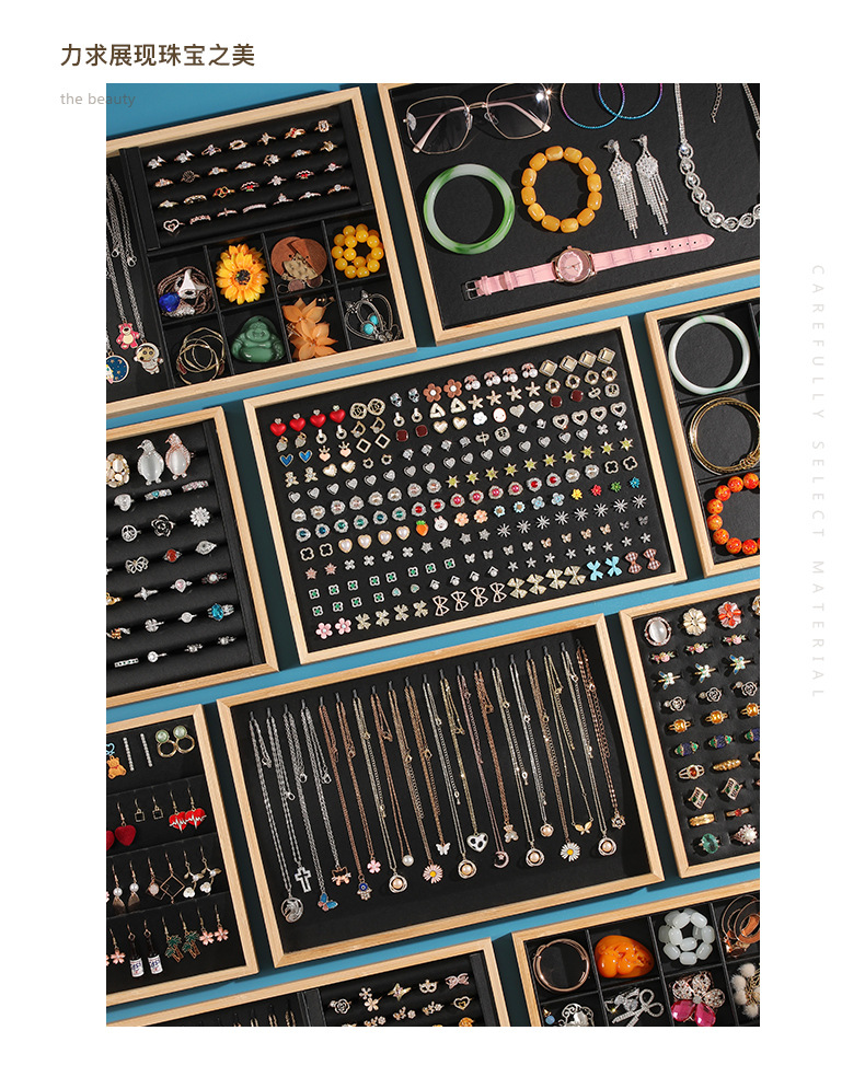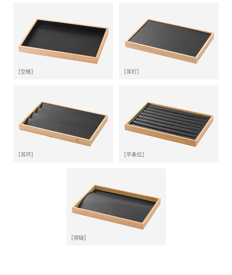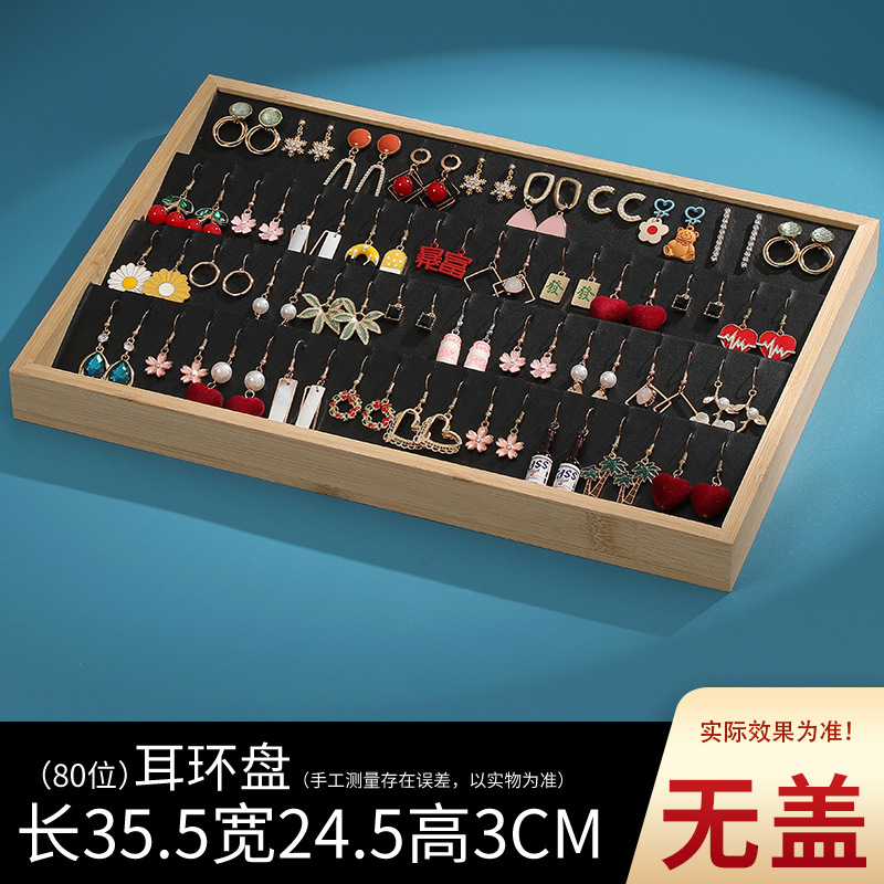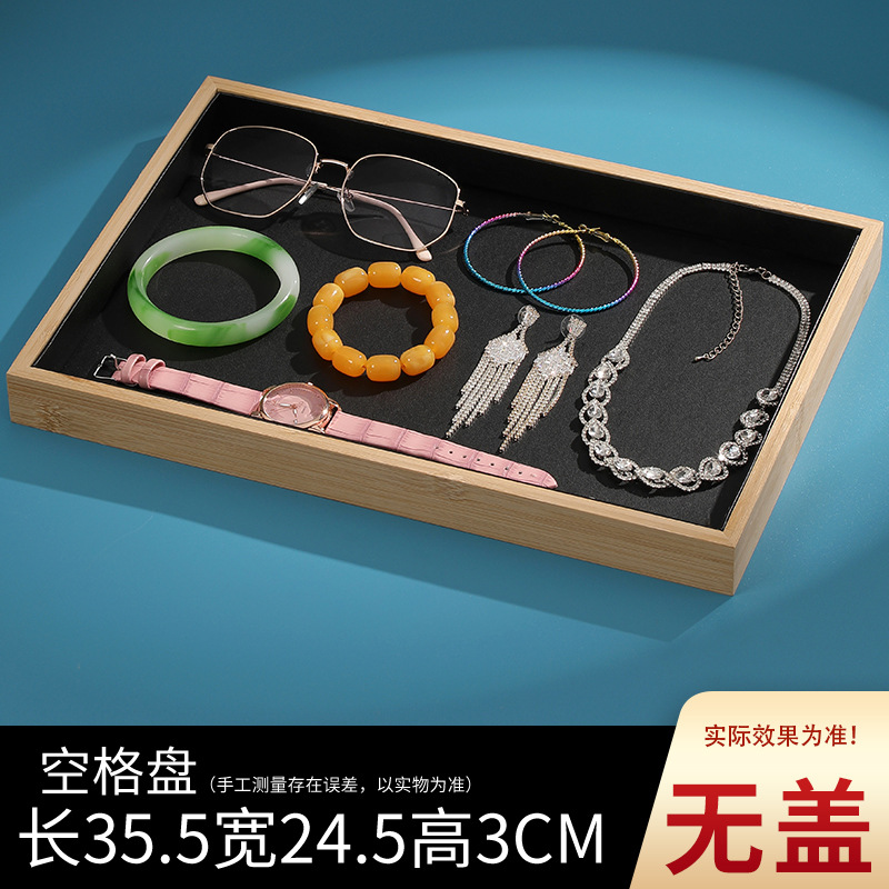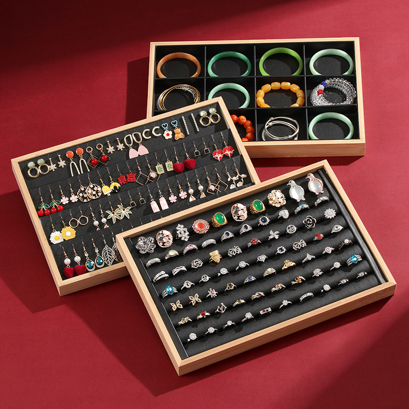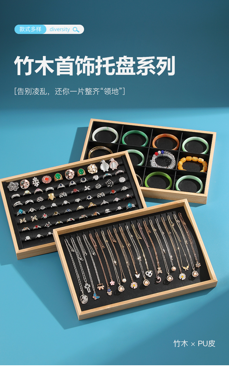 Bamboo wood jewelry plate black jewelry tray ring stud earrings bracelet necklace watch jewelry storage display plate