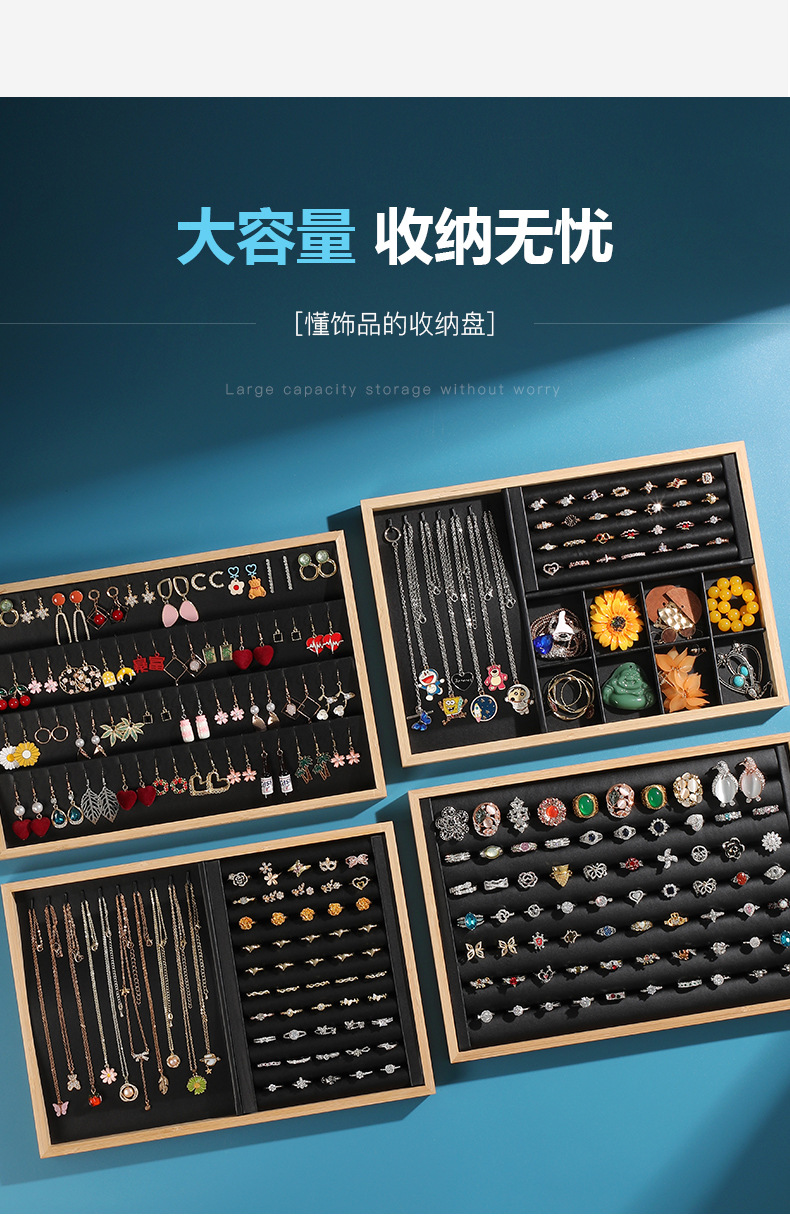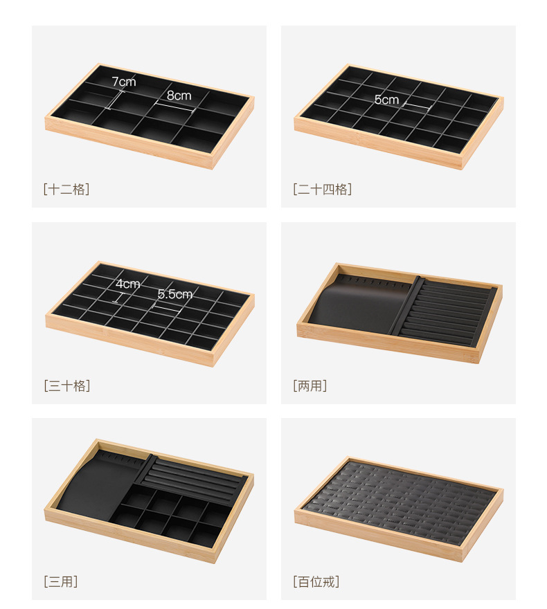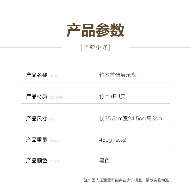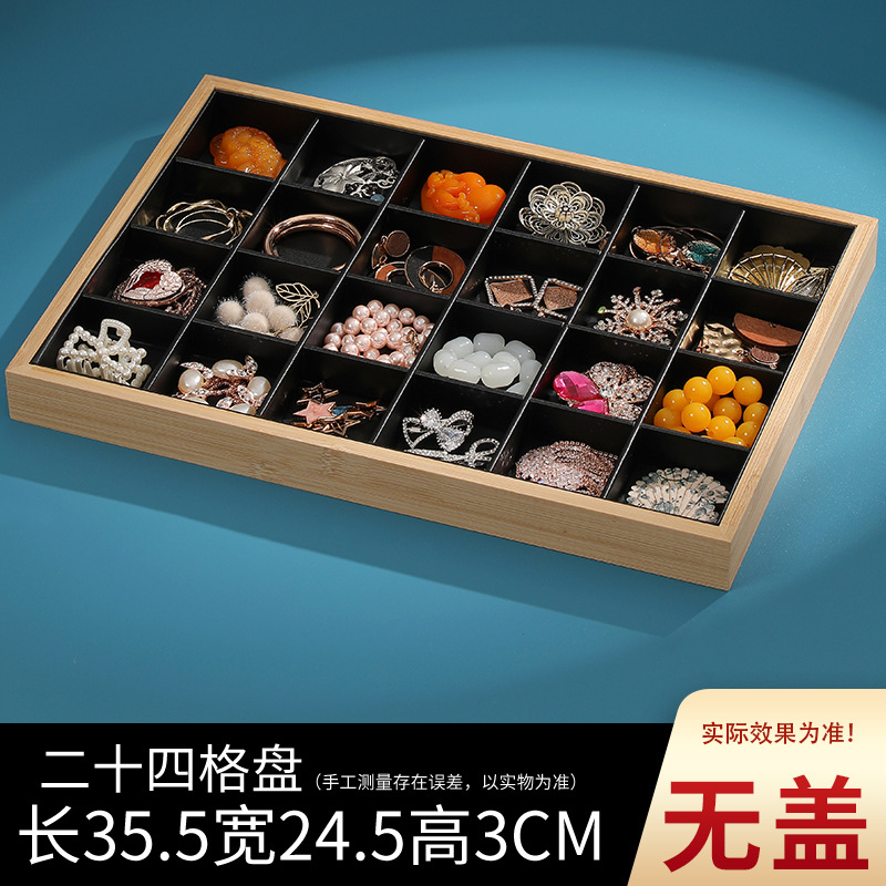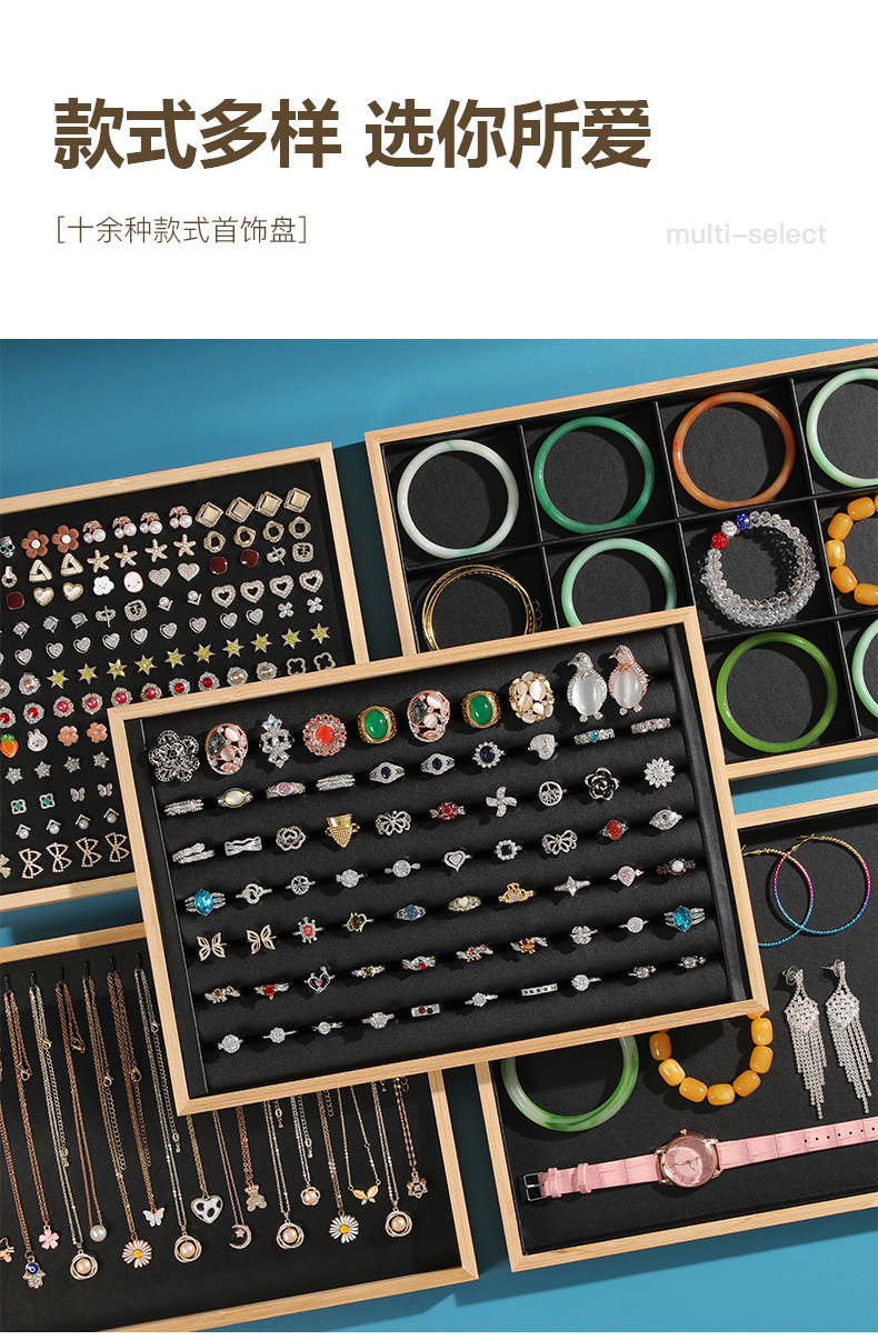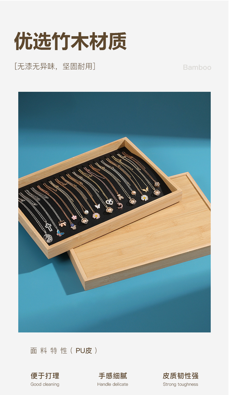 Bamboo wood jewelry plate black jewelry tray ring stud earrings bracelet necklace watch jewelry storage display plate