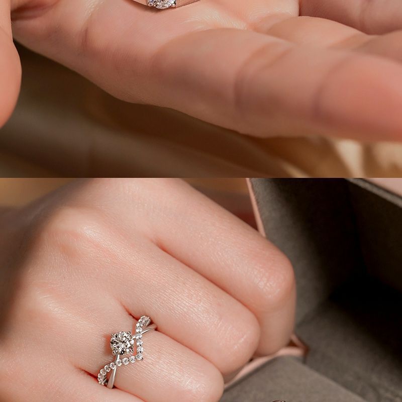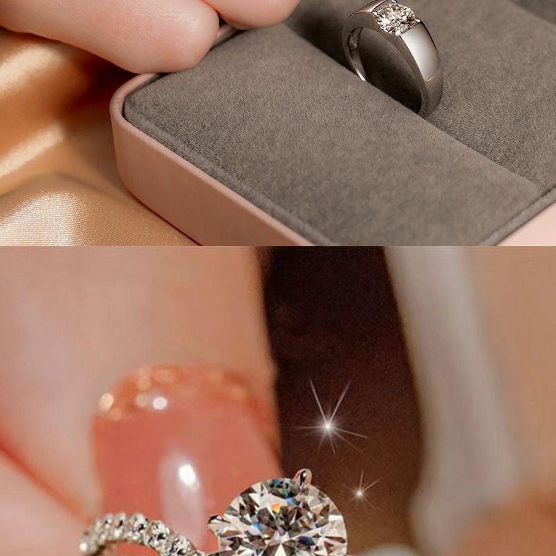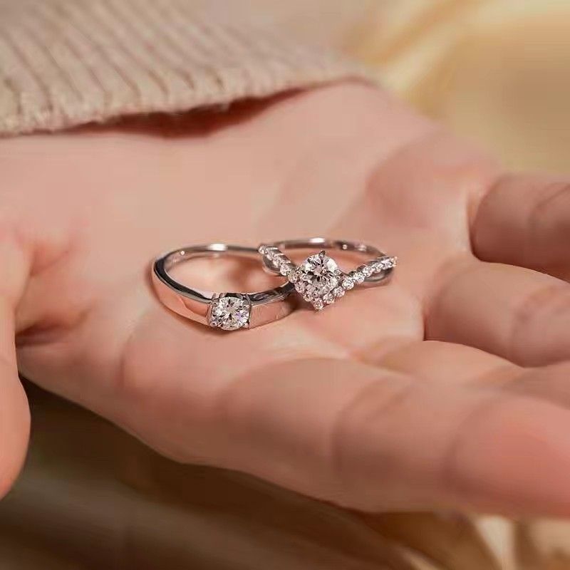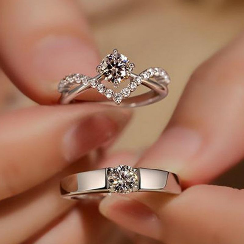 Crowning for Love Couple's Ring Four Claw 1 karat Zircon Diamond Ring Pair for Men and Women Wedding Ring Crown Opening Pair Ring