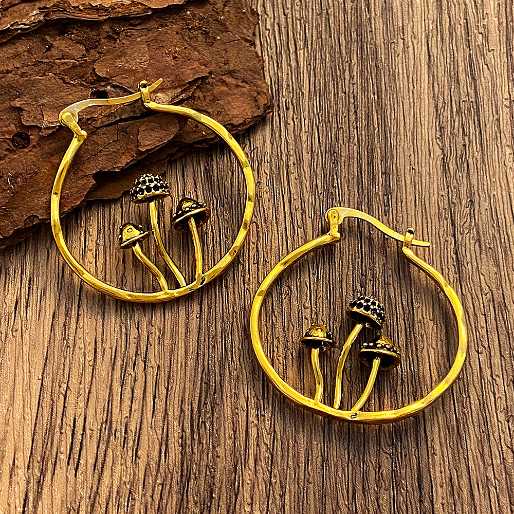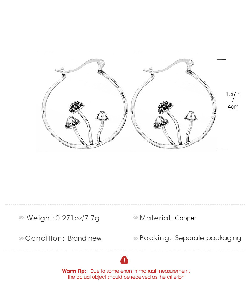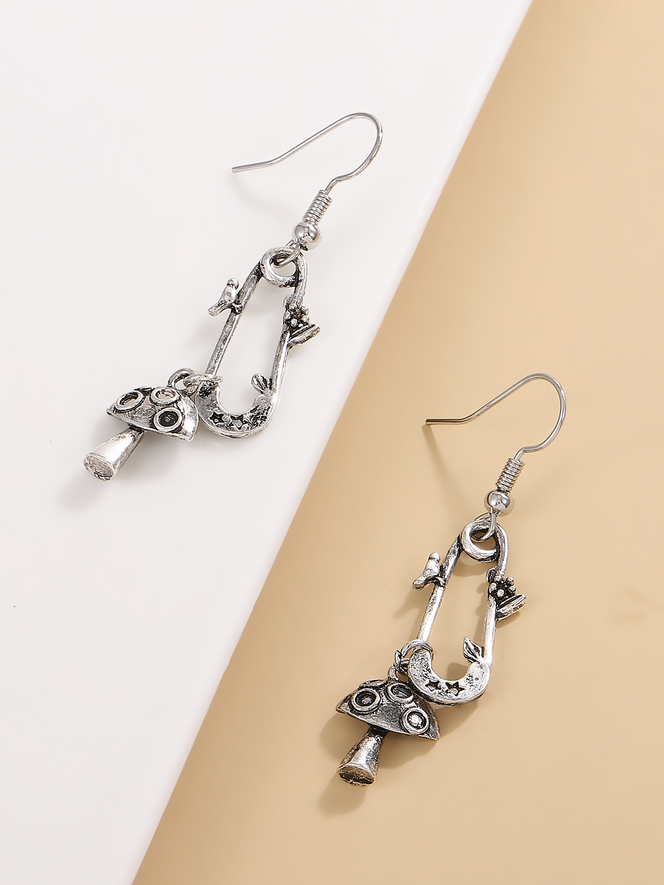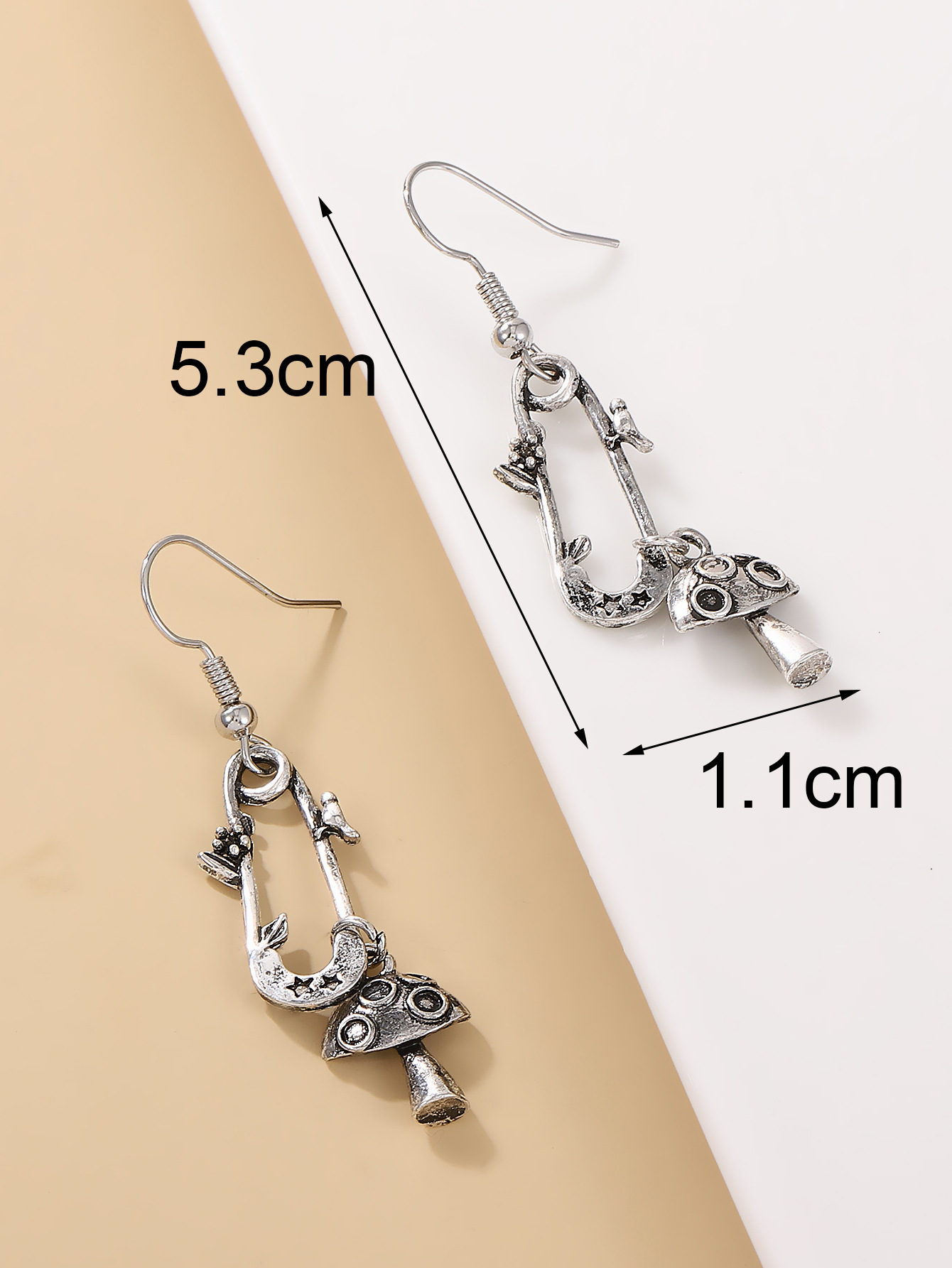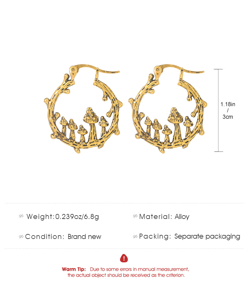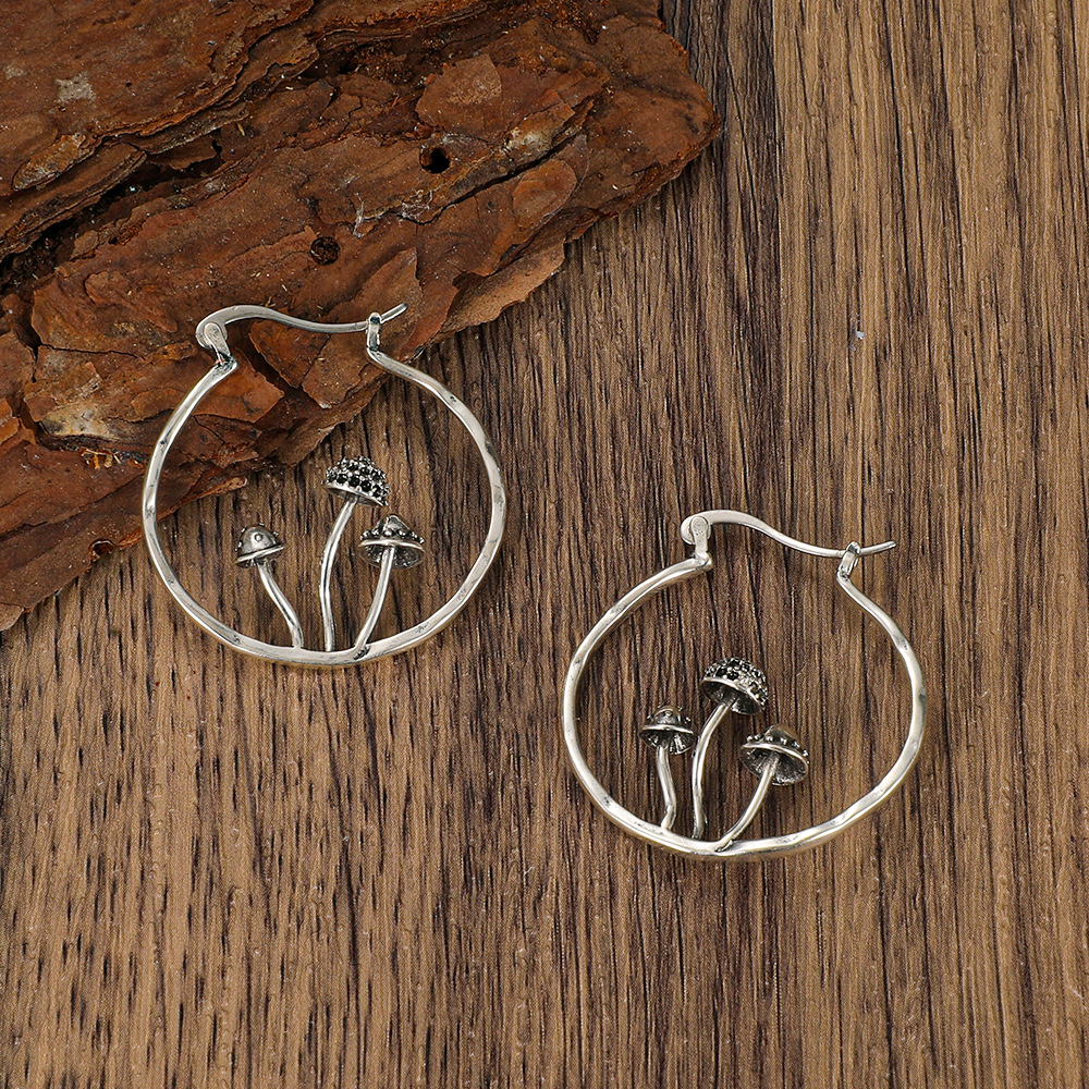 Vintage Ancient Silver Branch Ring Earrings Carving Ancient Silver Ethnic Mushroom Tribal Pendant Earrings Women's Jewelry