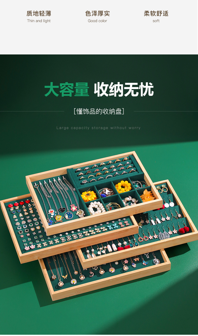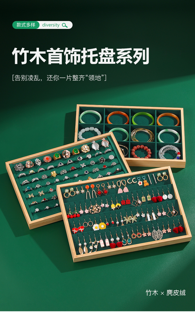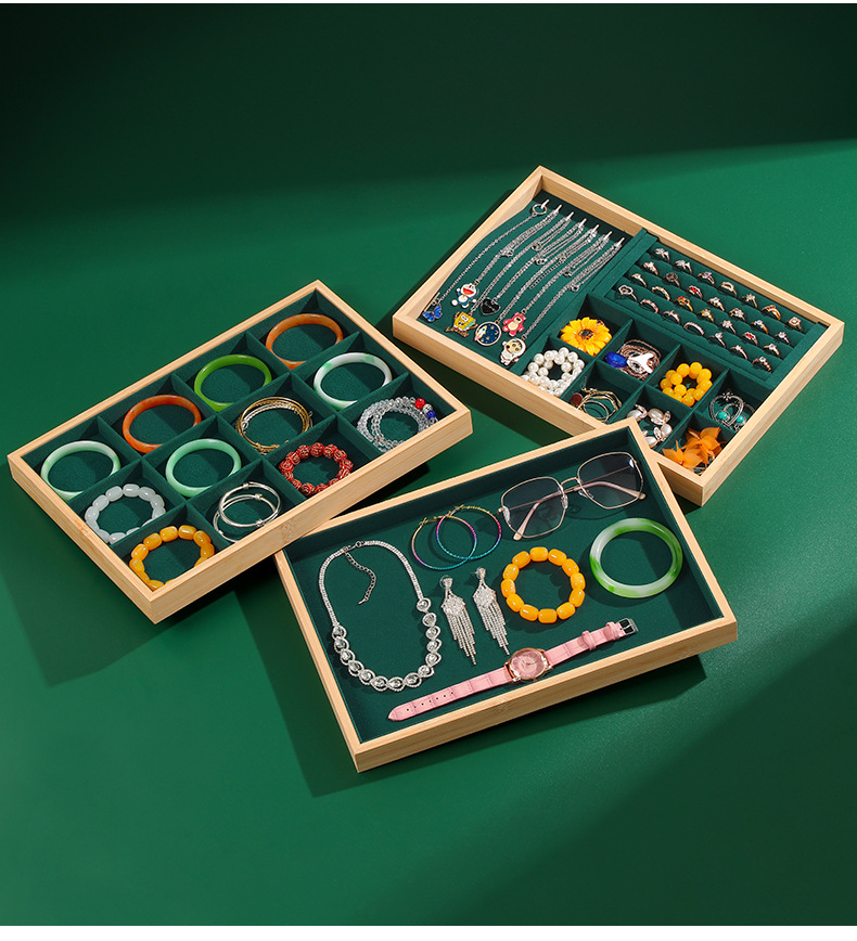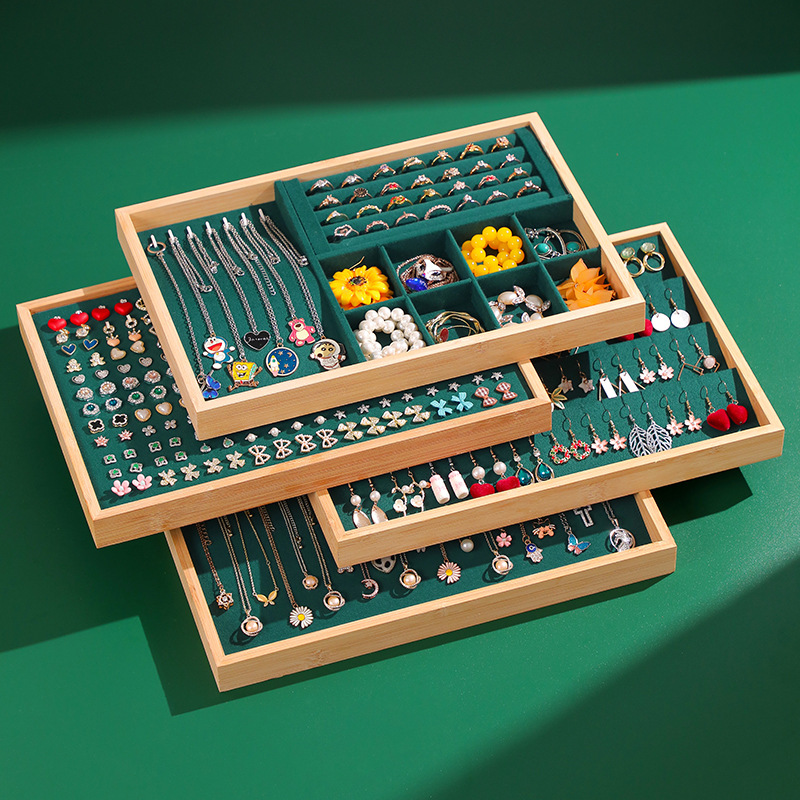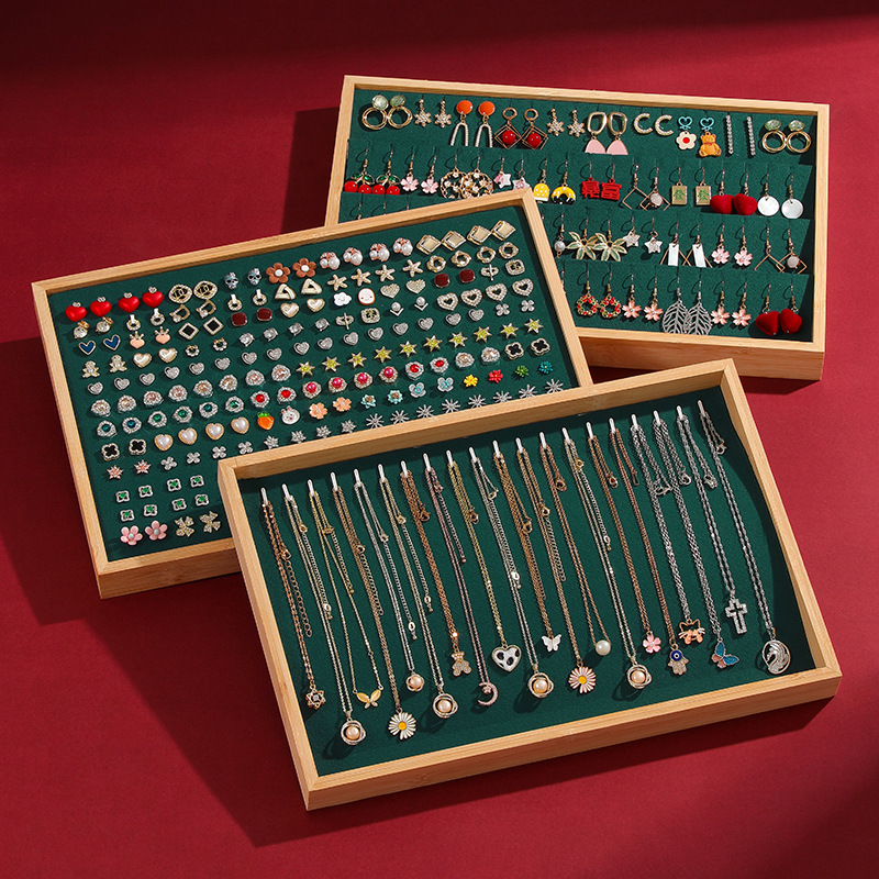High-grade Bamboo Jewelry Tray Bracelet Bracelet Ring Storage Plate Necklace Earrings Earrings Jewelry Tray Stall