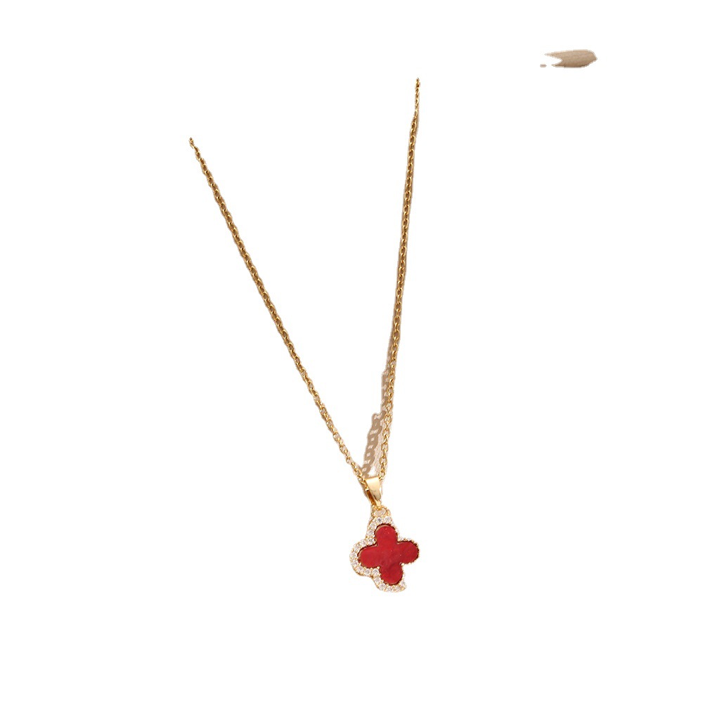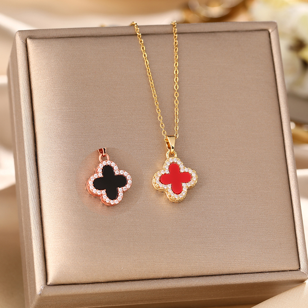 Korean Style Fashionable Elegant Four-leaf Clover Black and White Necklace Women's Light Luxury Woolen Chain Double-sided Two-color Pendant Clavicle Chain Jewelry
