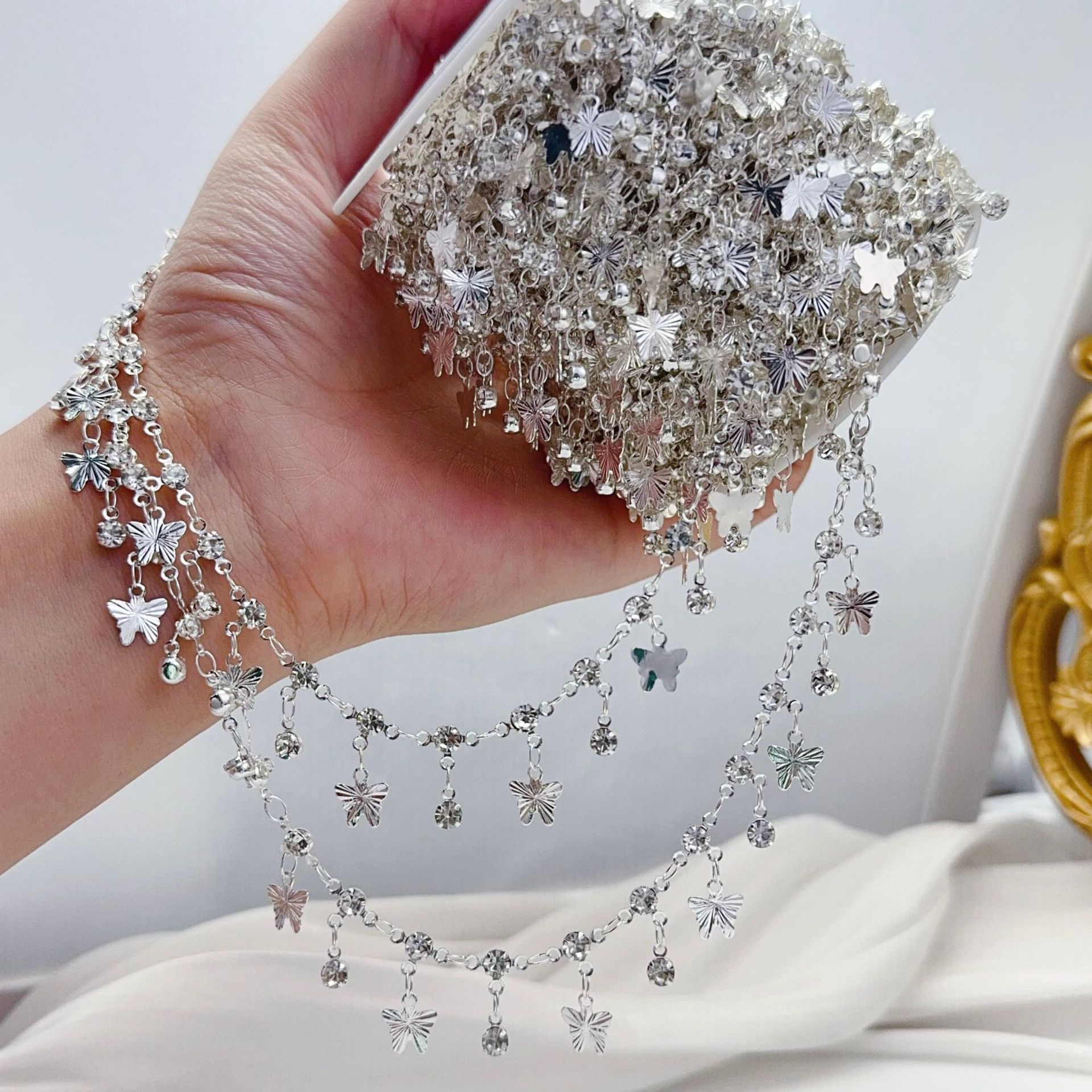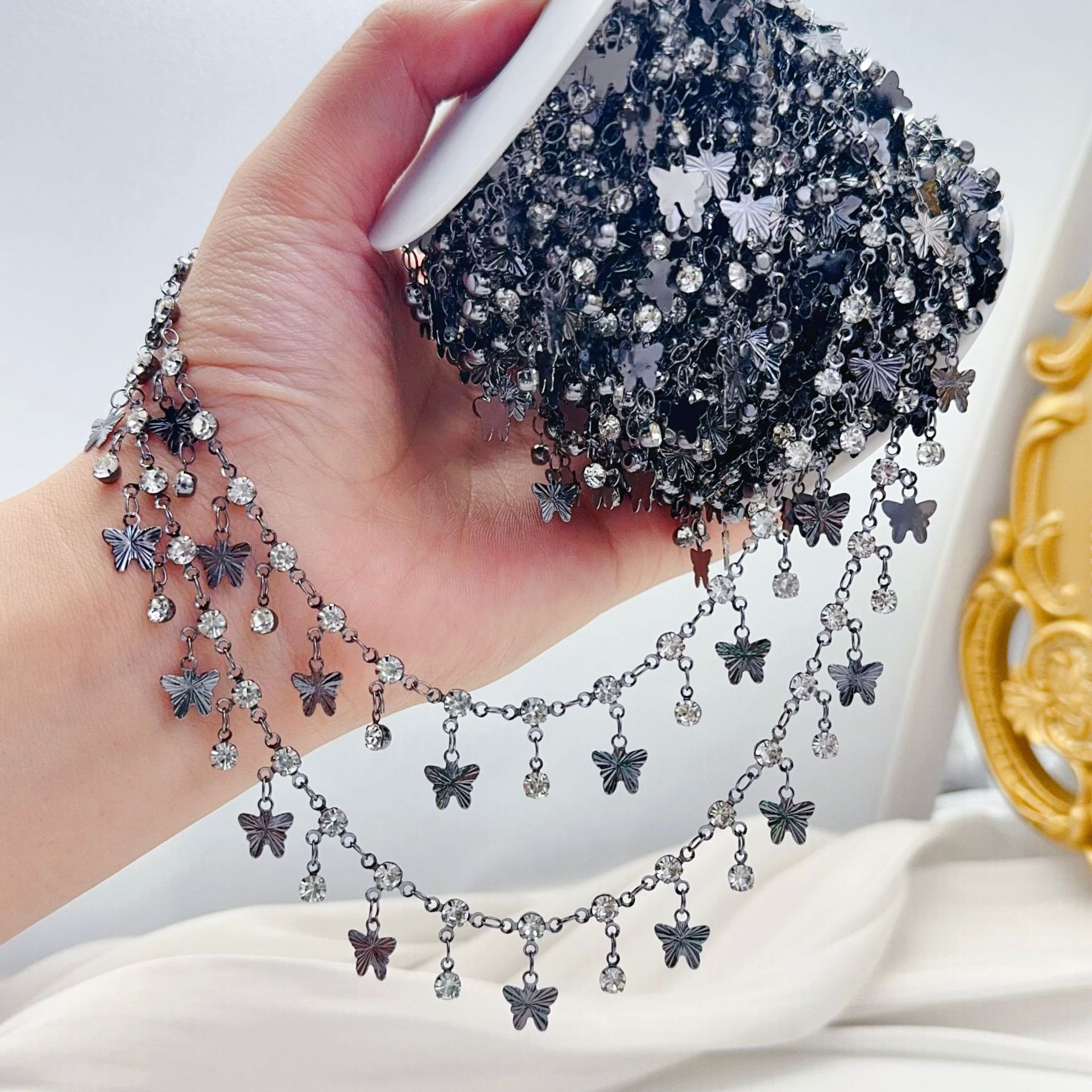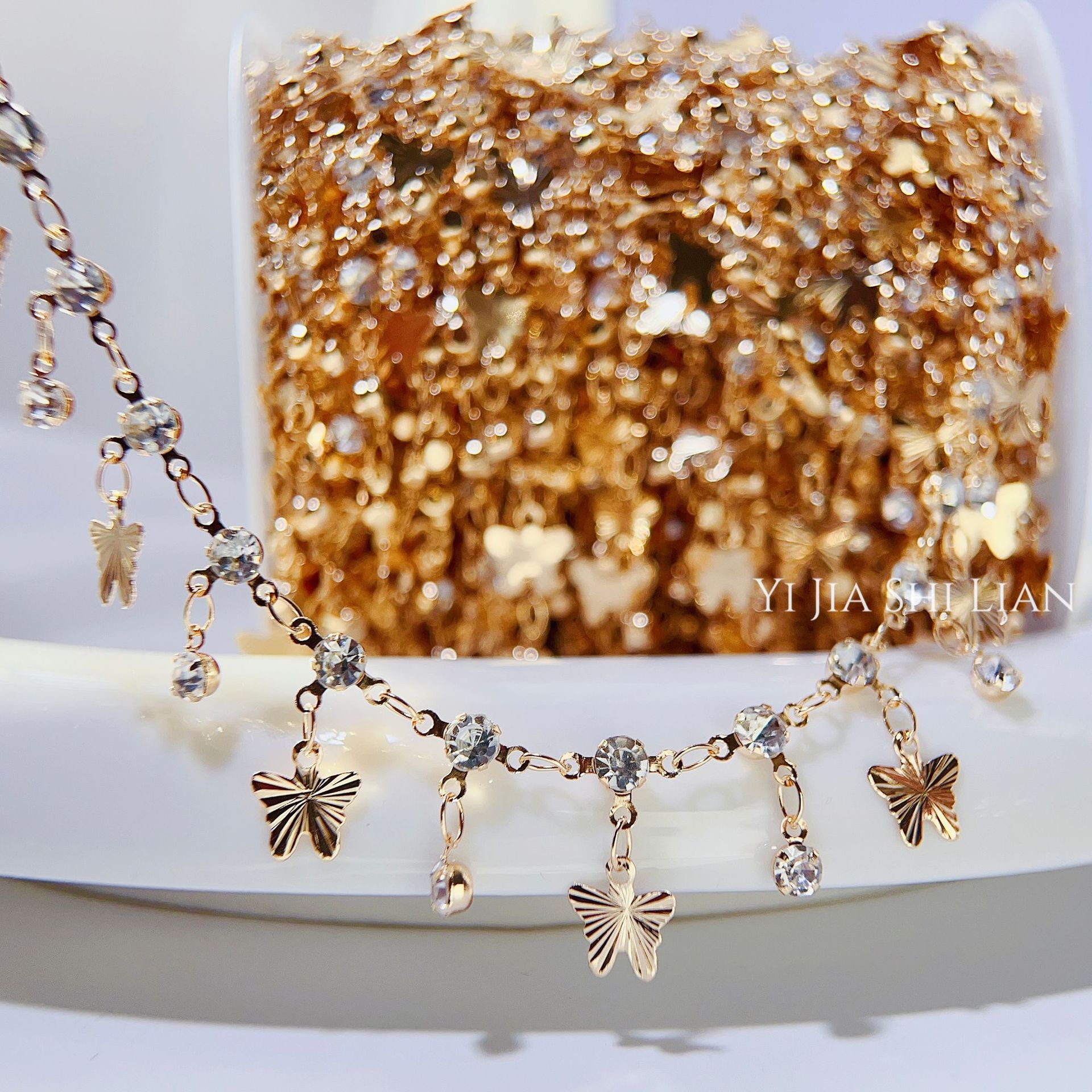 diy exotic jewelry accessories pure copper color-retaining copper chain batch flower butterfly tassel chain ancient style hanfu handmade diamond chain