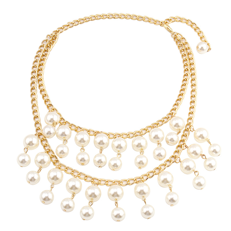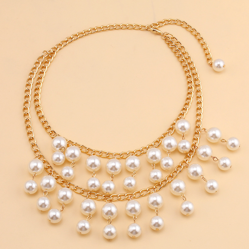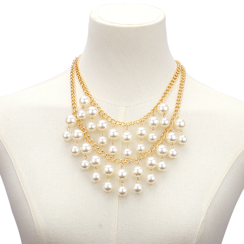 European and American Cross-border Fashion Exaggerated Necklace Double-layer Large Imitation Pearl Necklace Tassel Pearl Short Clavicle Chain for Women