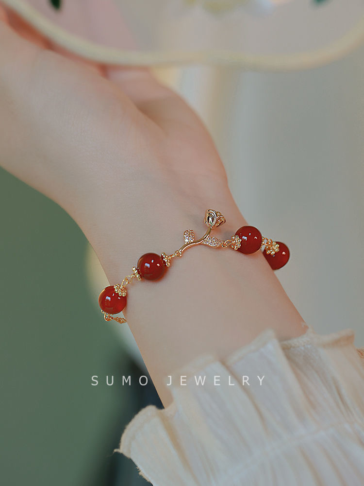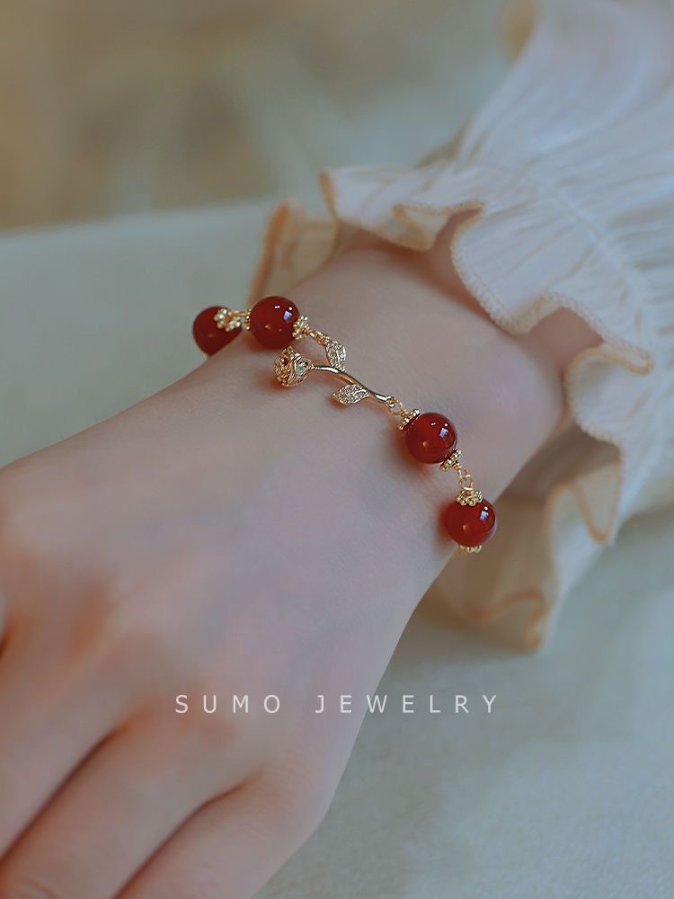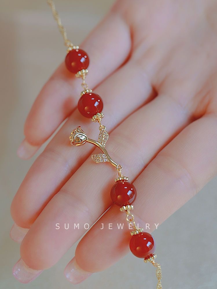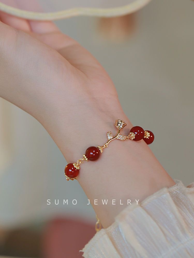 Red Rose Bell Bracelet Super White Bracelet Light Luxury Elegant High-end Handstring Bracelet Combination Set