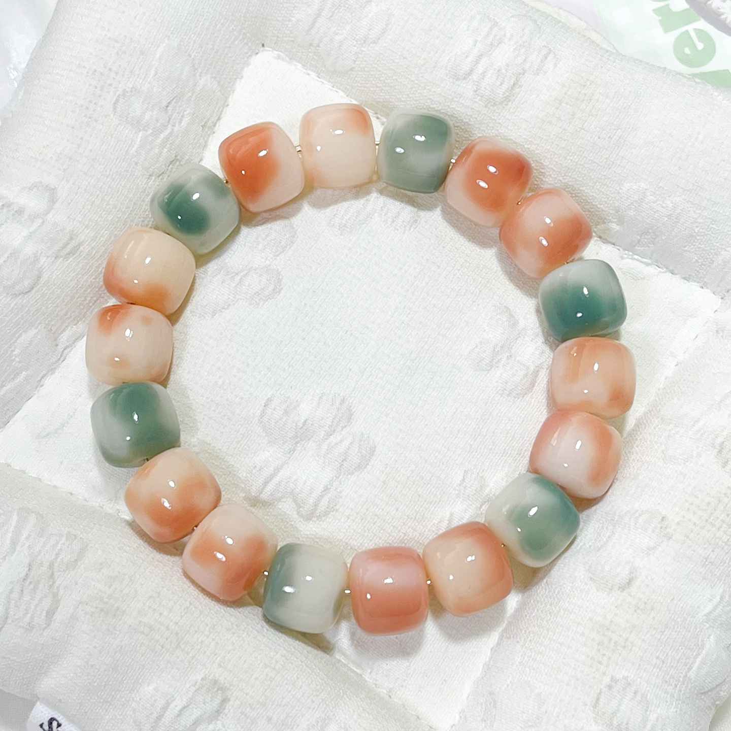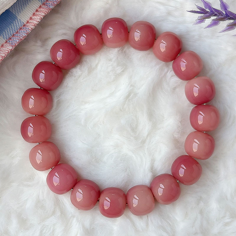 Color: Pink and green willow [single circle of barrel beads]