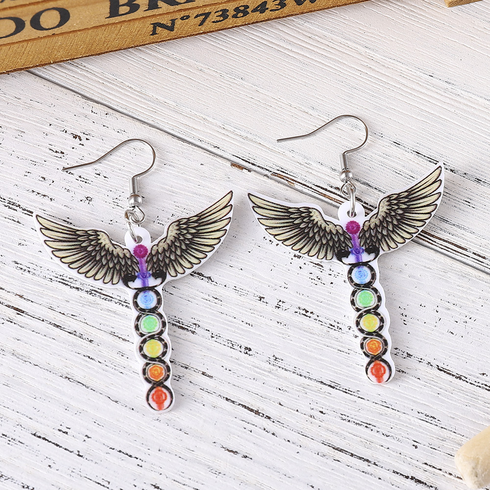 【产品名称/Title】:天使翅膀瑜伽打坐冥想七脉图耳环双面亚克力耳坠个性耳饰