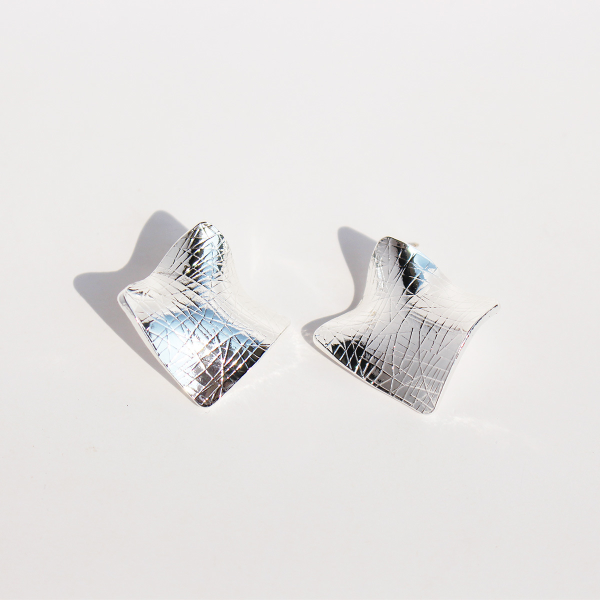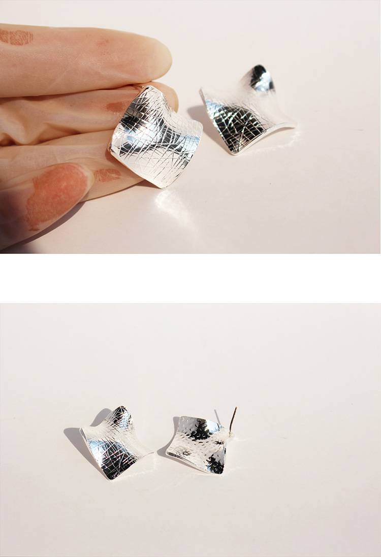 European and American Niche Pleated Geometric Exaggerated Earrings Trendy Stylish Asymmetrical Metal Texture Earrings Silver Needle 801-1