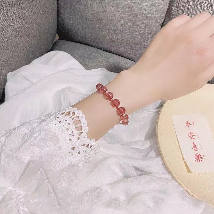 Raspberry Crystal Cute Bracelet Women's Peach Blossom Simple Couple Love Sweet Jewelry Bell Ring Feather Crystal Bracelet
