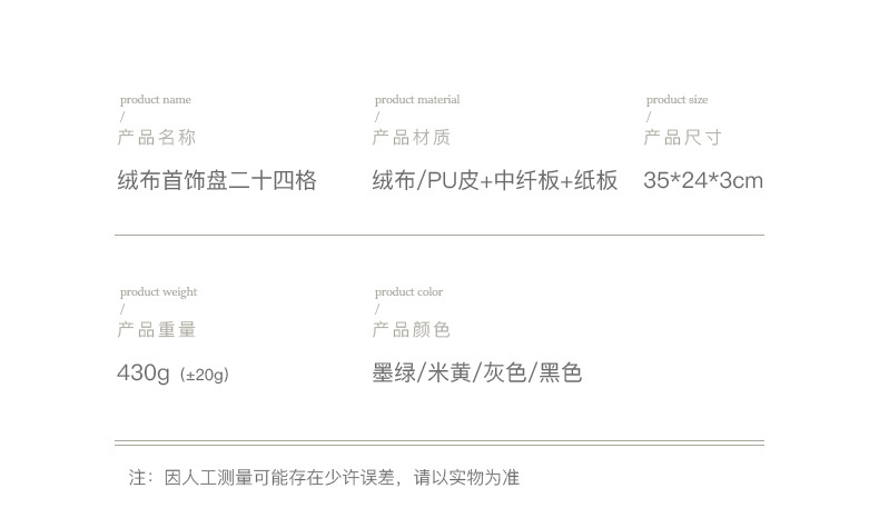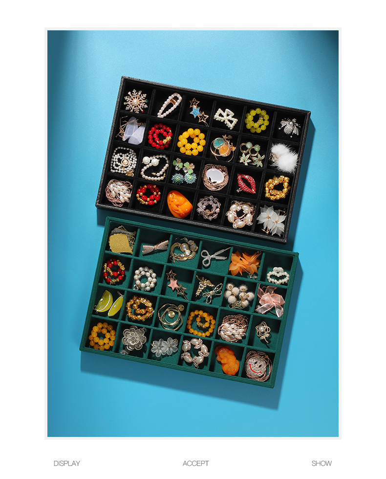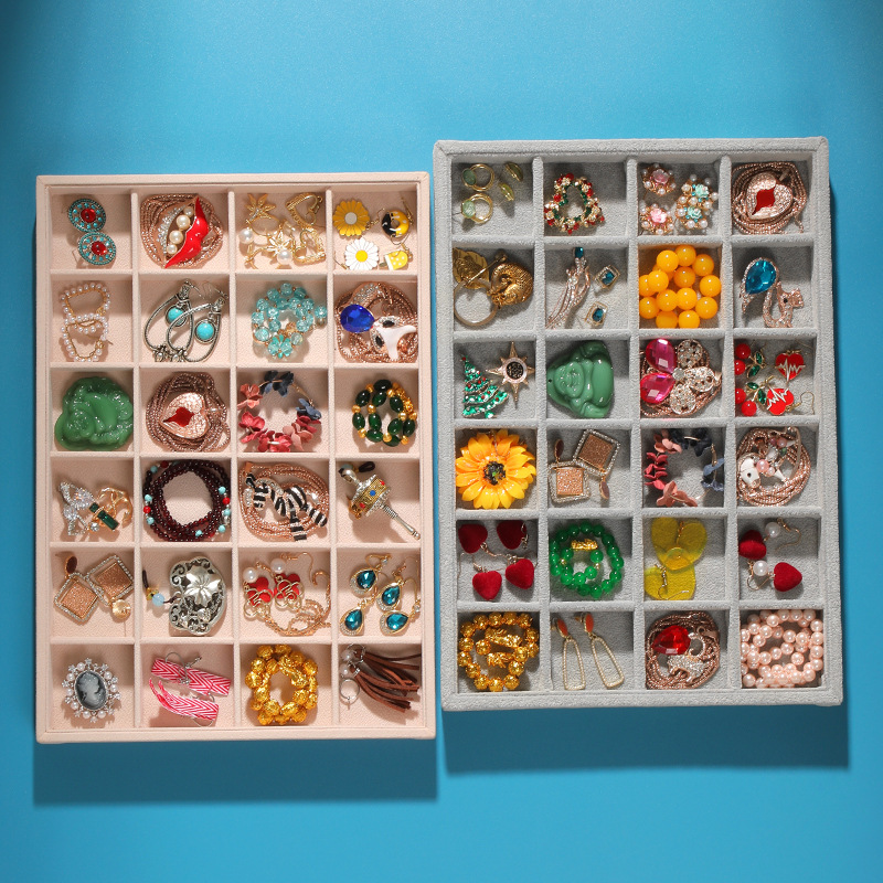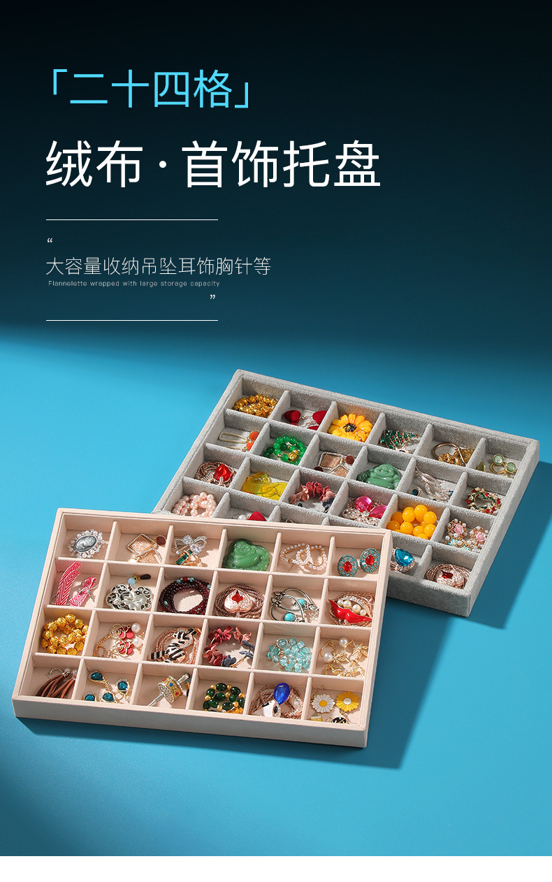 Flannel 24 grid jewelry tray ring stud earrings jewelry plate hairpin brooch necklace pendant jewelry display plate