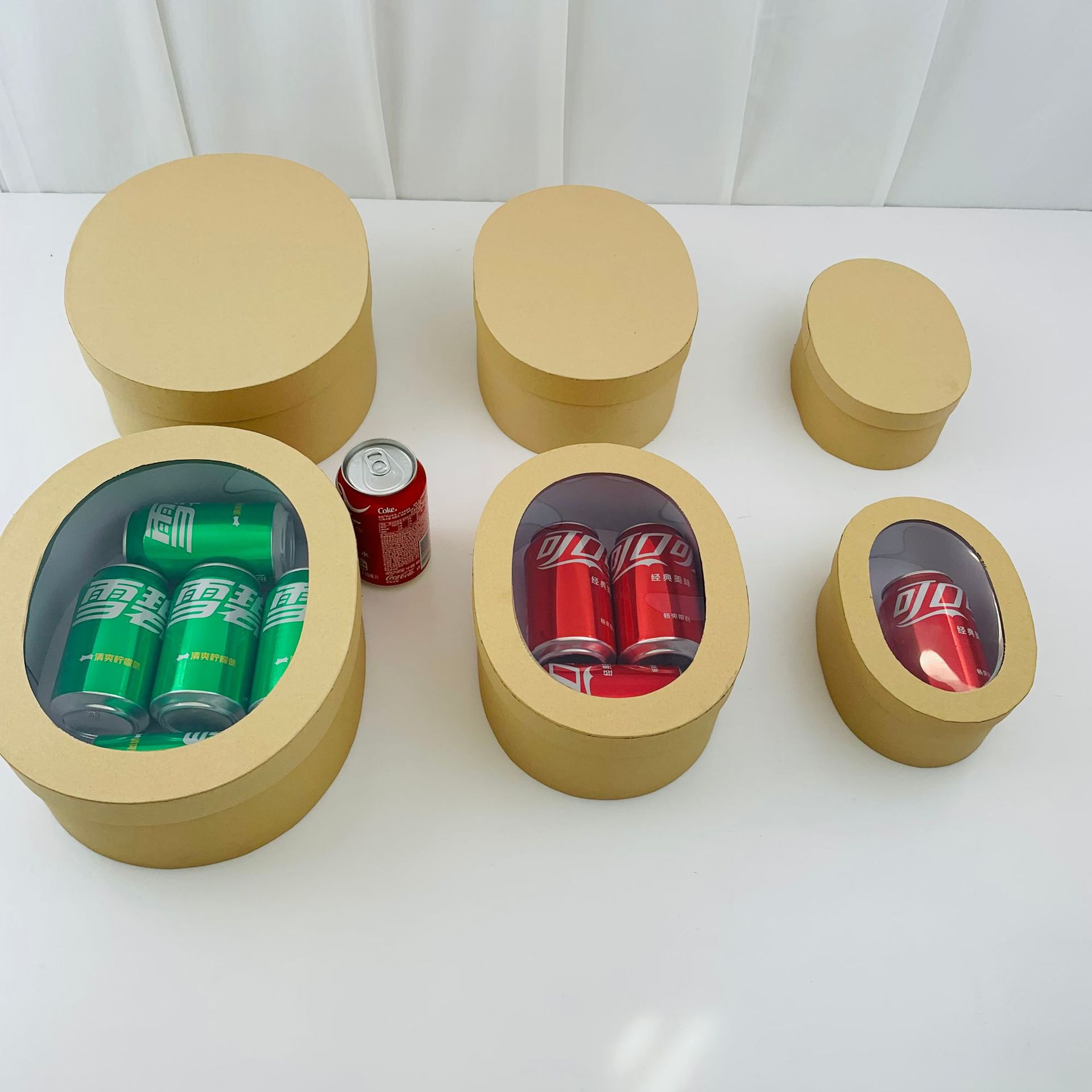 Specifications and models: Kraft paper small size: length 19*width 13.5*height 7.5cm; oval window box