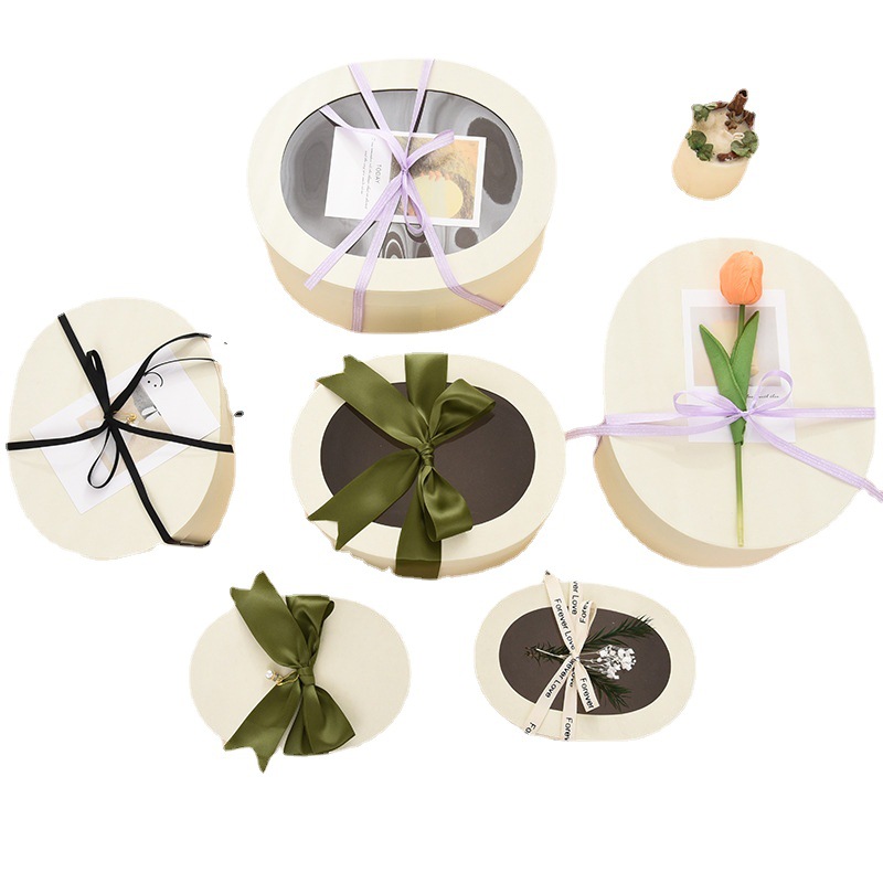Specifications and models: Off-white medium length 24*width 19*height 10cm; oval gift box