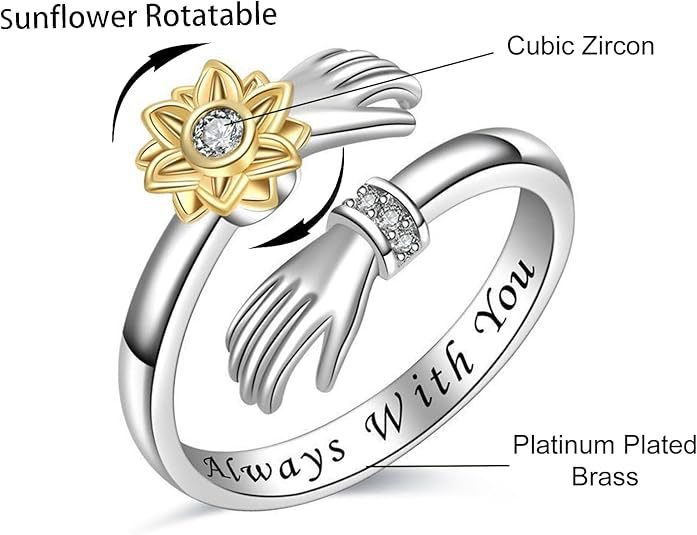 Cross-border Explosions Amazon Adjustable Sunflower Rotating Silver Ring with Diamond Simple Mori-style Hands Embrace Finger Ring