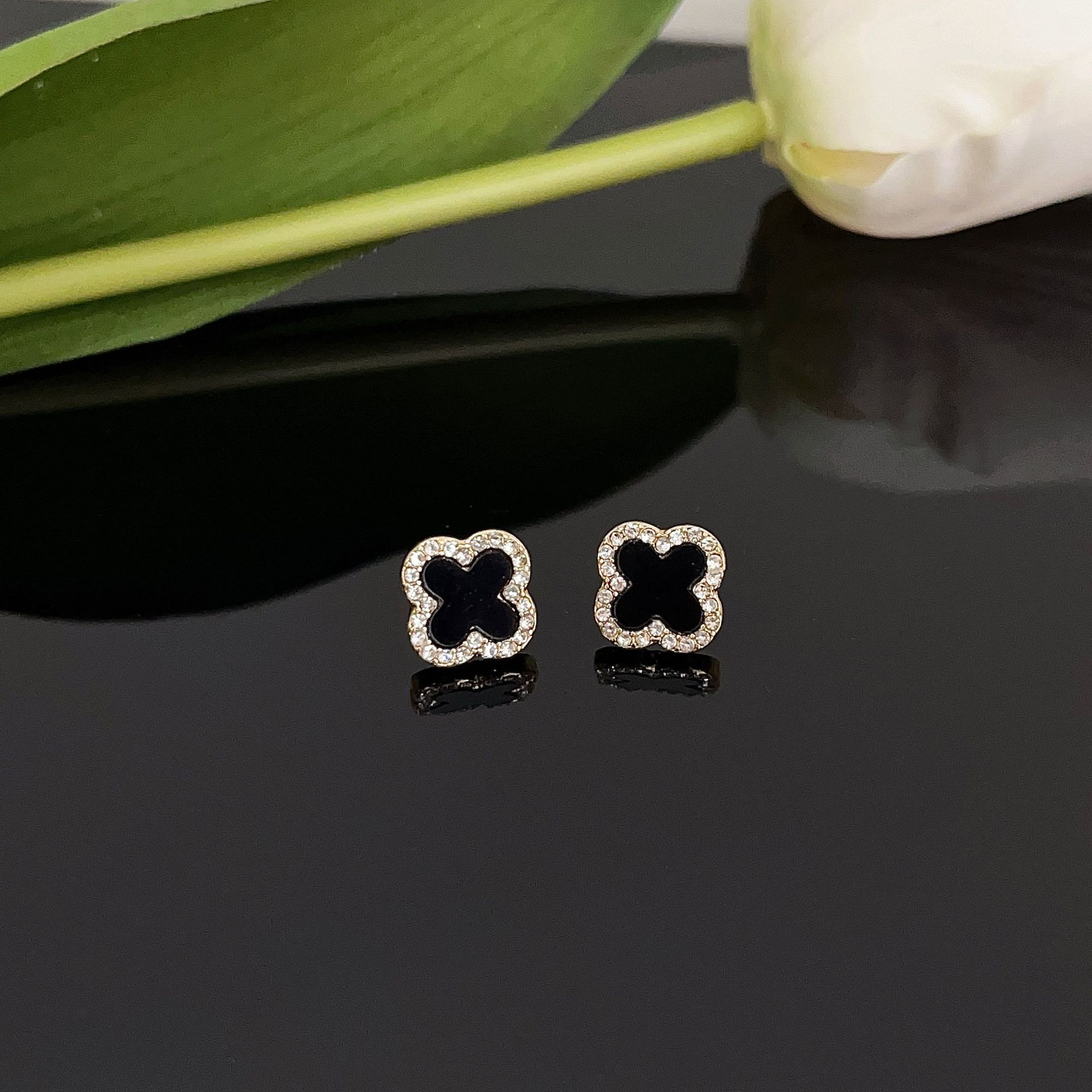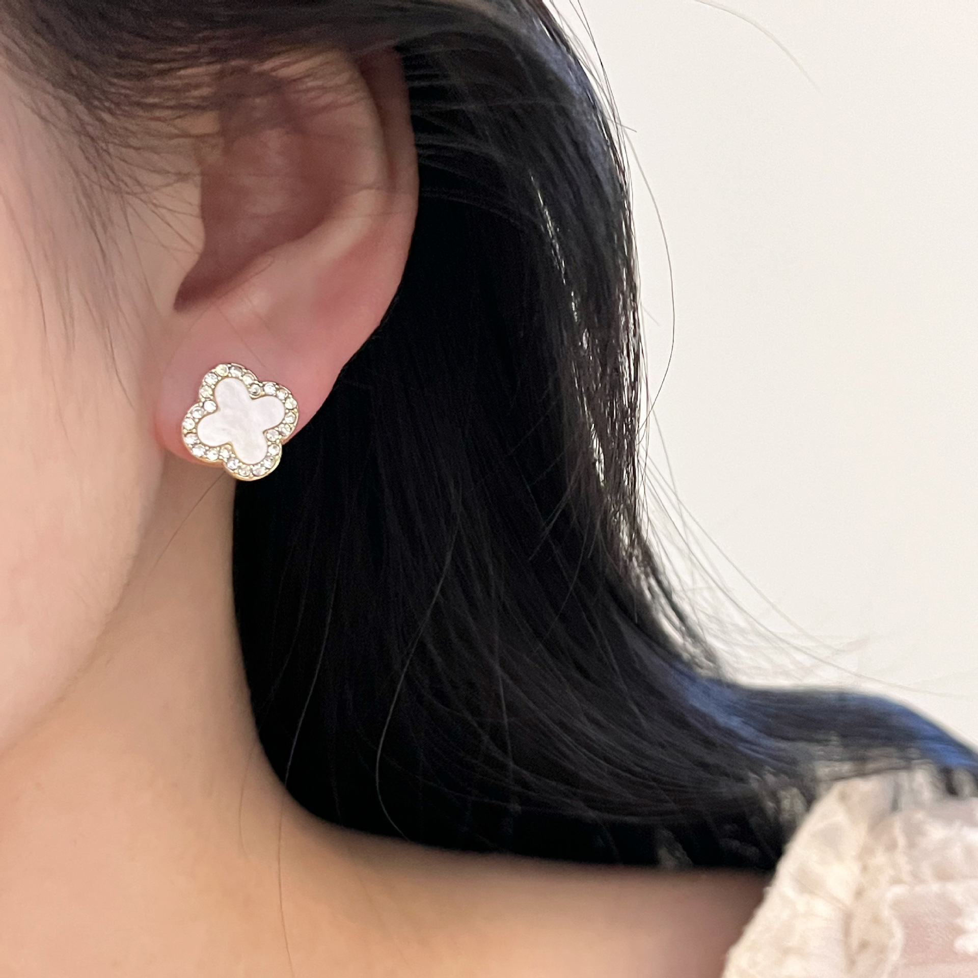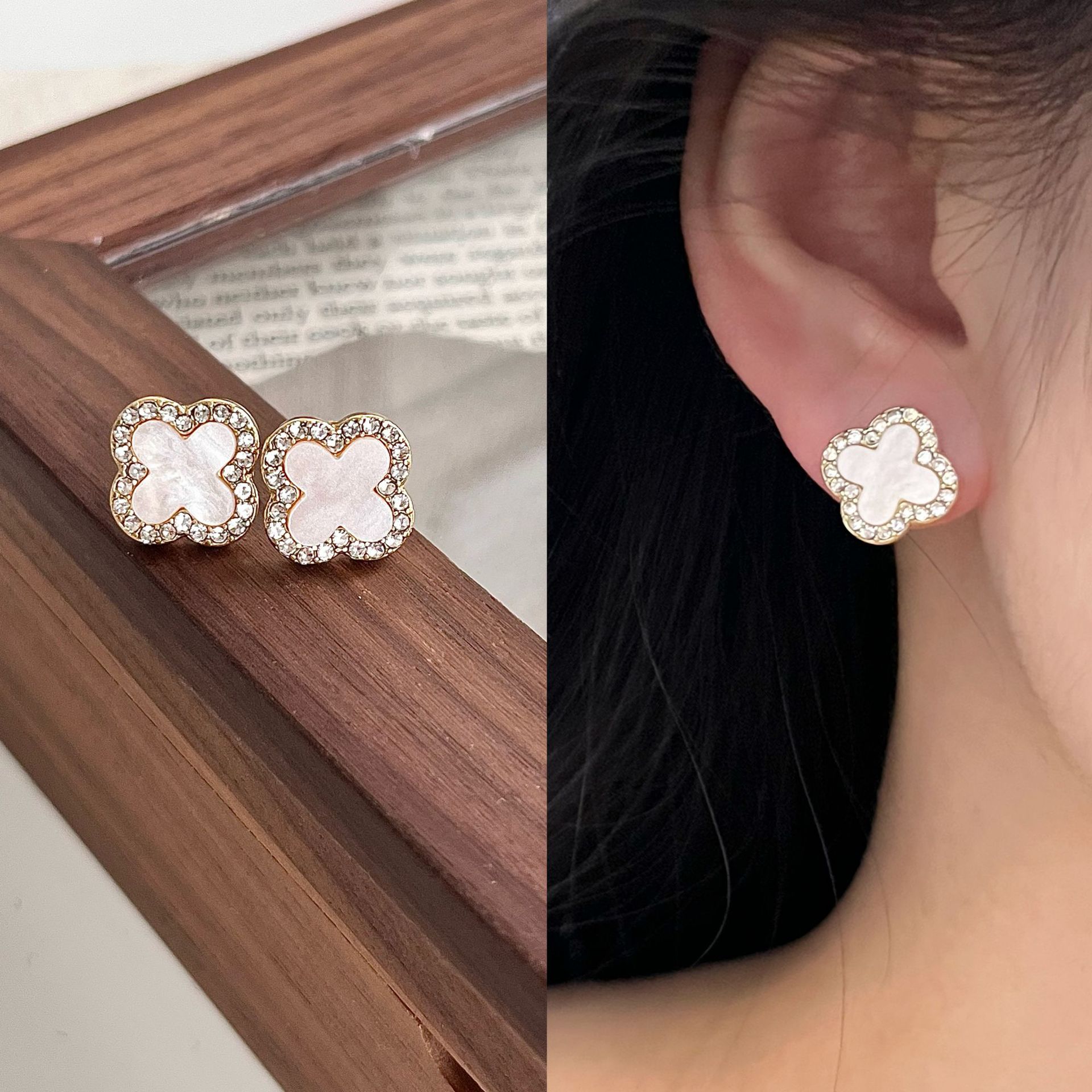 Diamond-encrusted four-leaf clover earrings women's compact simple cold style light luxury niche design high-end earrings ear clip