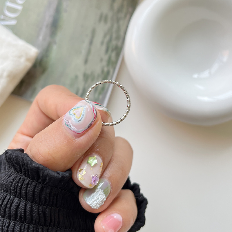 Kassett Korean version of S925 sterling silver ins style trend circle fine flash personality temperament ring ring