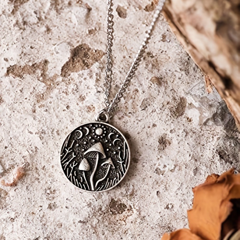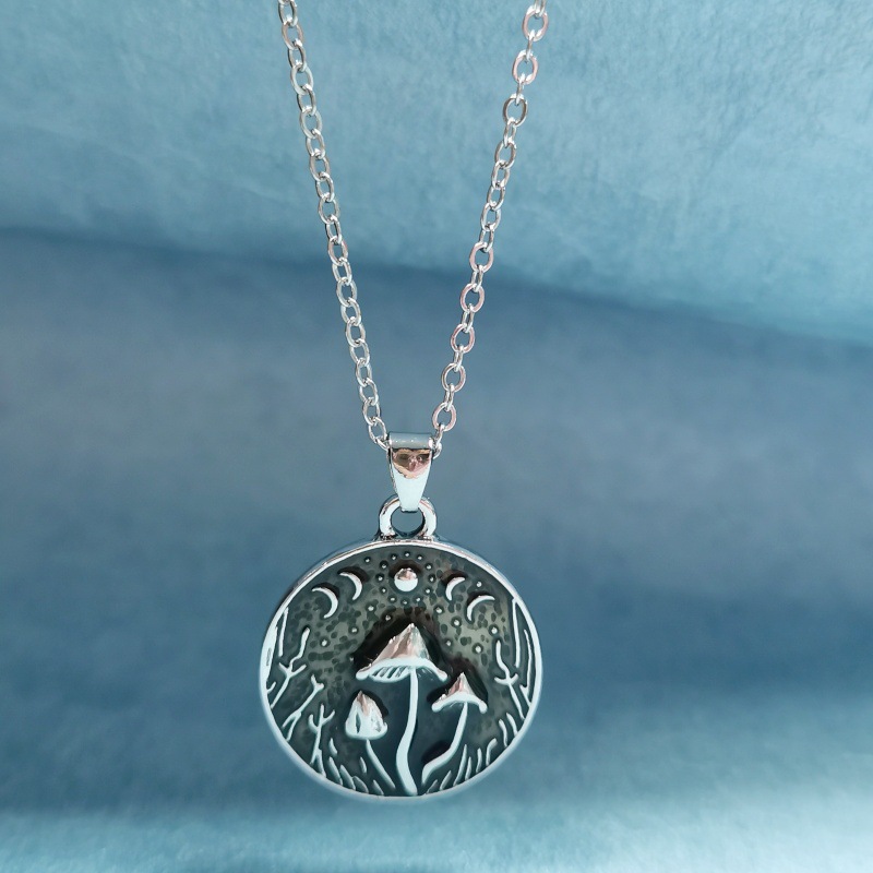 Cross-border New Jewelry European and American Film Alice in Wonderland Necklace Retro Mushroom Disc Pendant Necklace