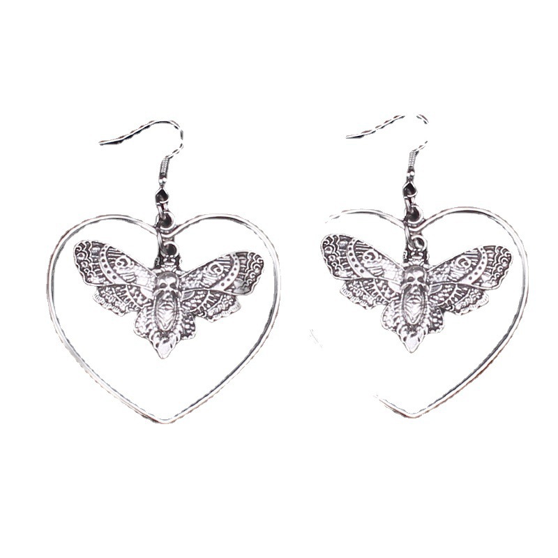 Fashion Retro Thriller Halloween Ghost Festival Skull Moth Earrings Ear Hook Fashion Hip Hop Horror Exaggerated Earrings