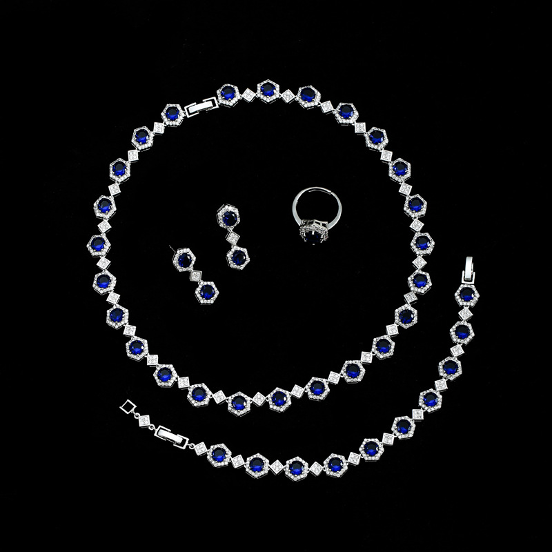 Color: Blue zirconium on white background (necklace earrings ring bracelet four-piece set)