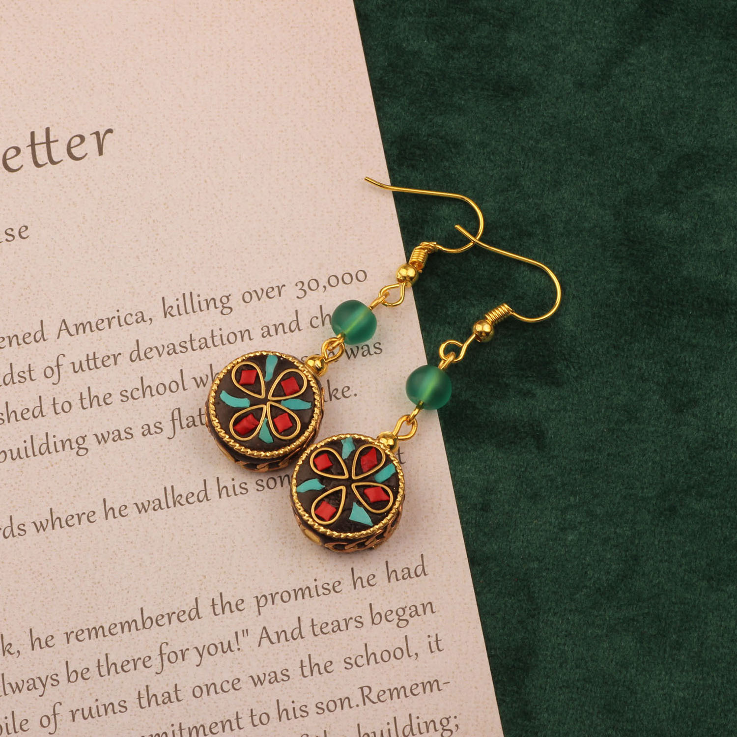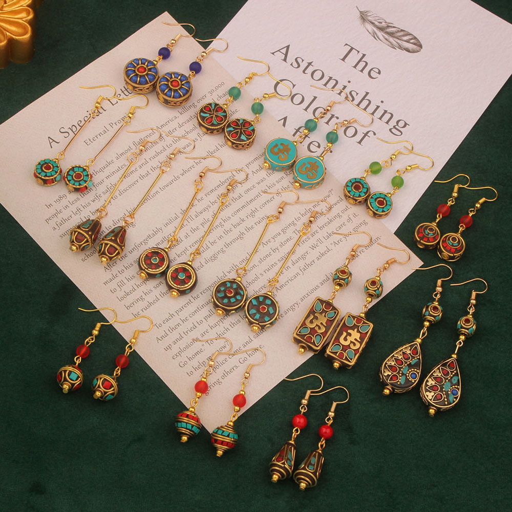 925 Sterling Silver Simple Imitation Turquoise Jewelry Handmade Design Ethnic Style Xizang Style Vintage Nepal Style Exotic Style Earrings