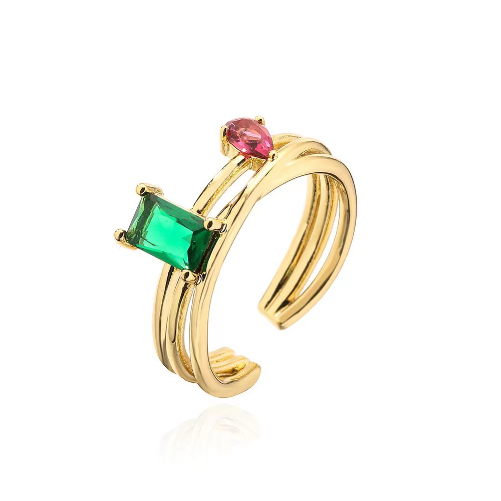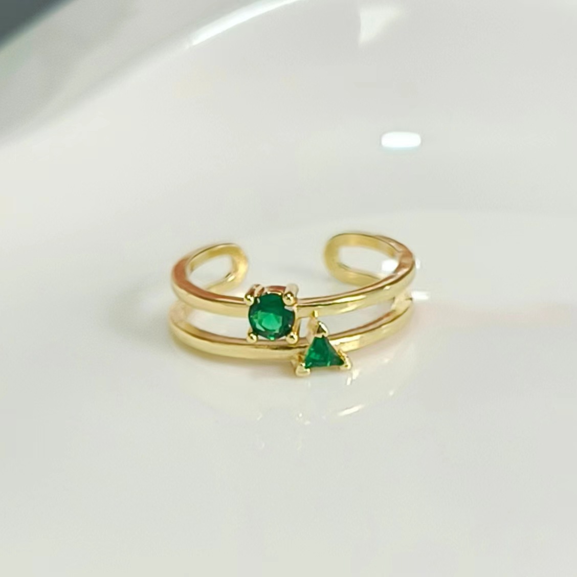 High-End Retro Green Zircon Ring for Women, European and American Style, Light Luxury, Niche Temperament, Fashionable and Versatile Design Ring