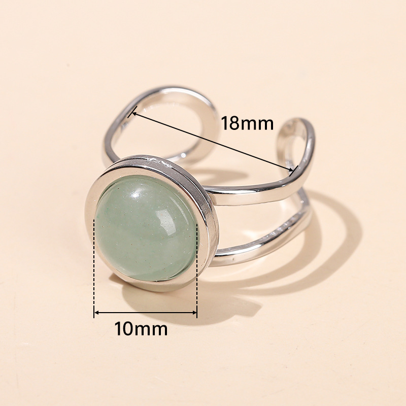 Color: Natural Green Dongling Round Opening Titanium Steel Ring
