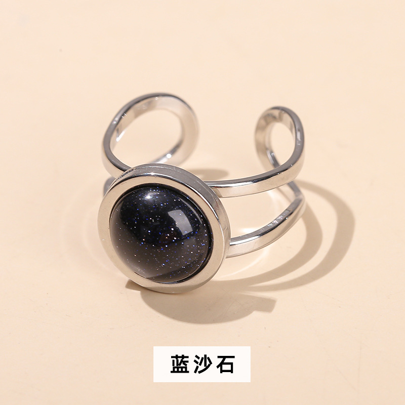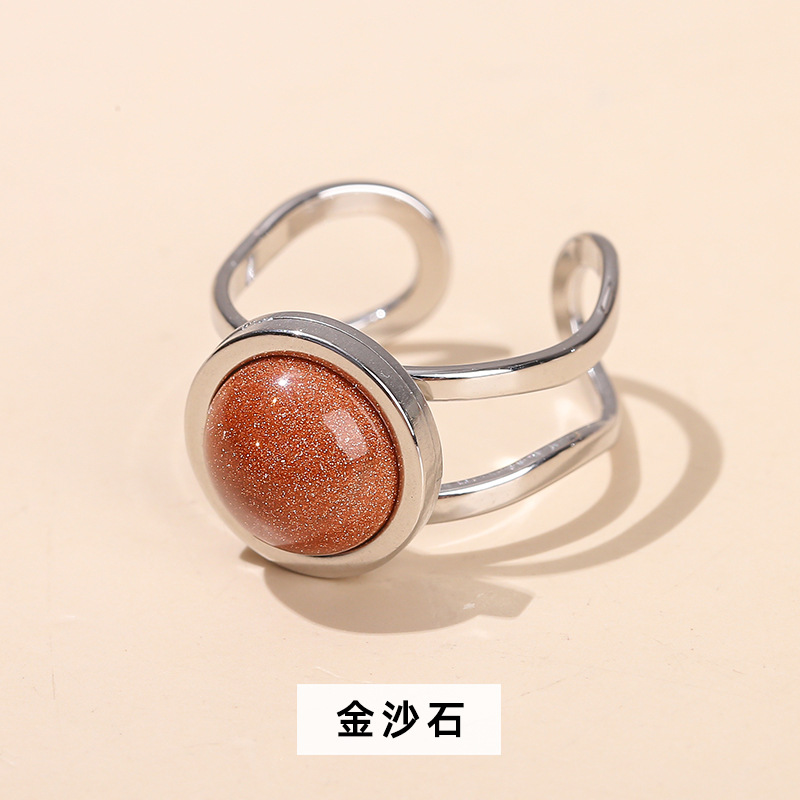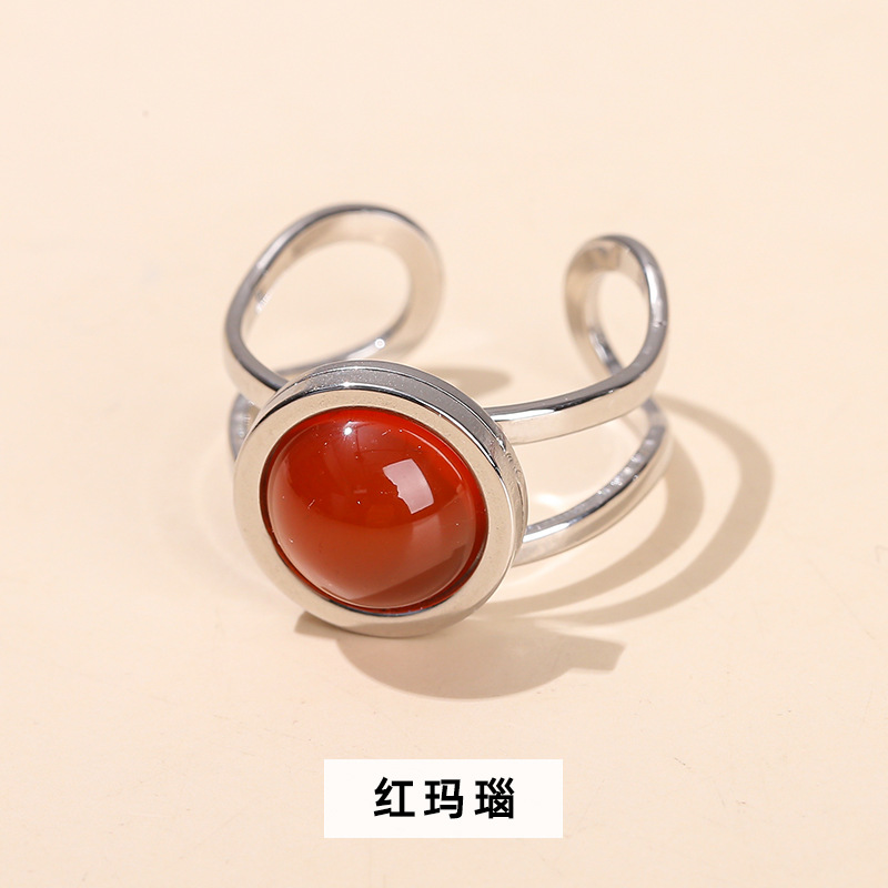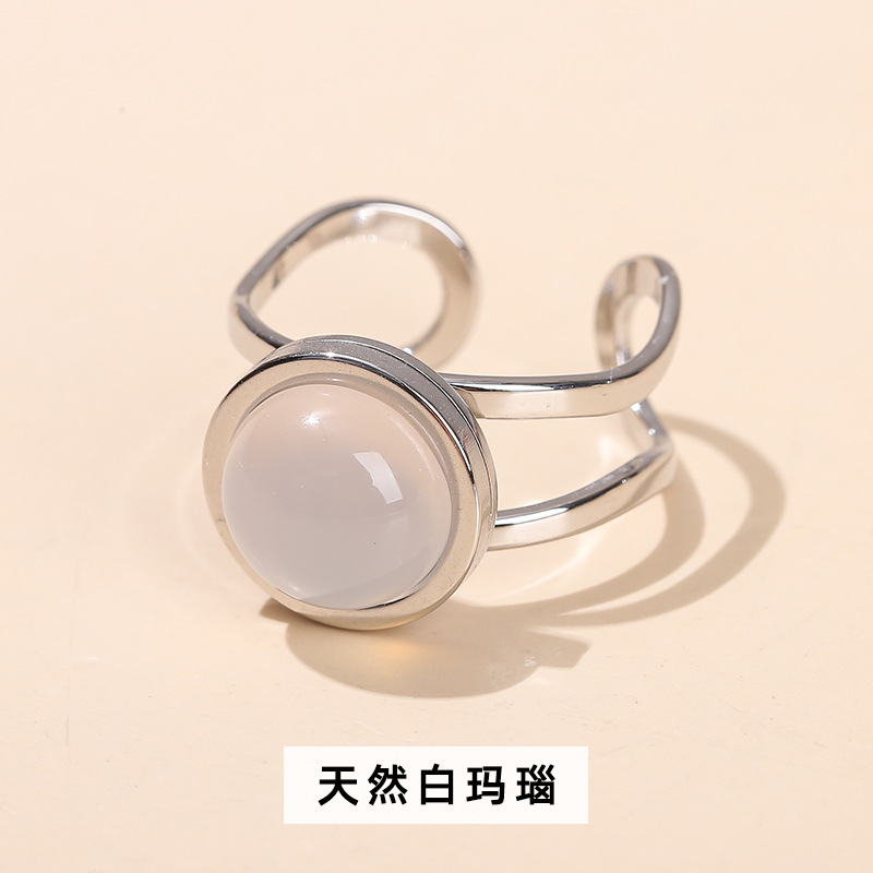 Color: Natural White Agate Round Opening Titanium Steel Ring