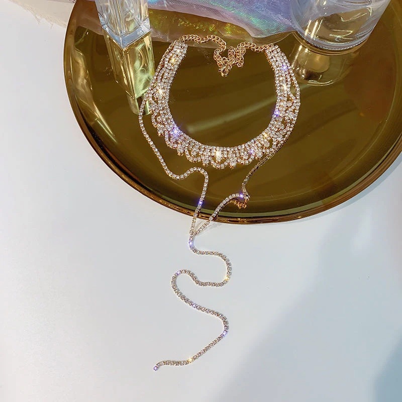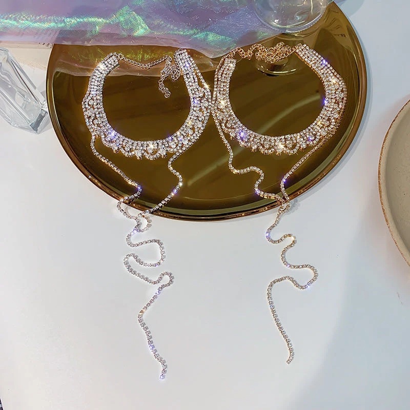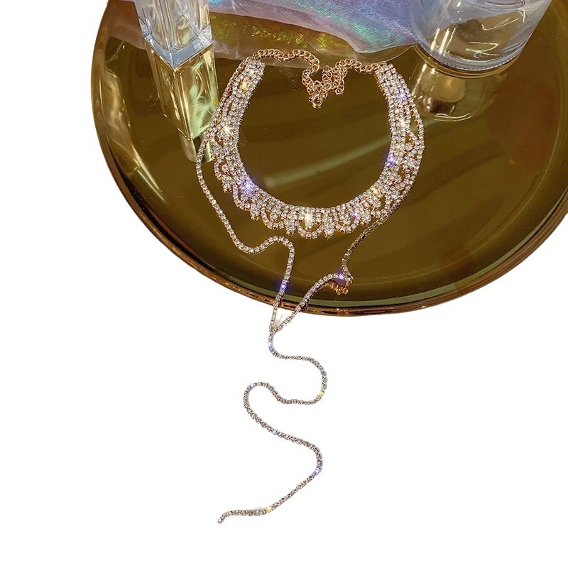 European and American Fashion Sexy Shiny Rhinestone Tassel Necklace choker T-word Necklace Jewelry Sexy Bone Chain for Women