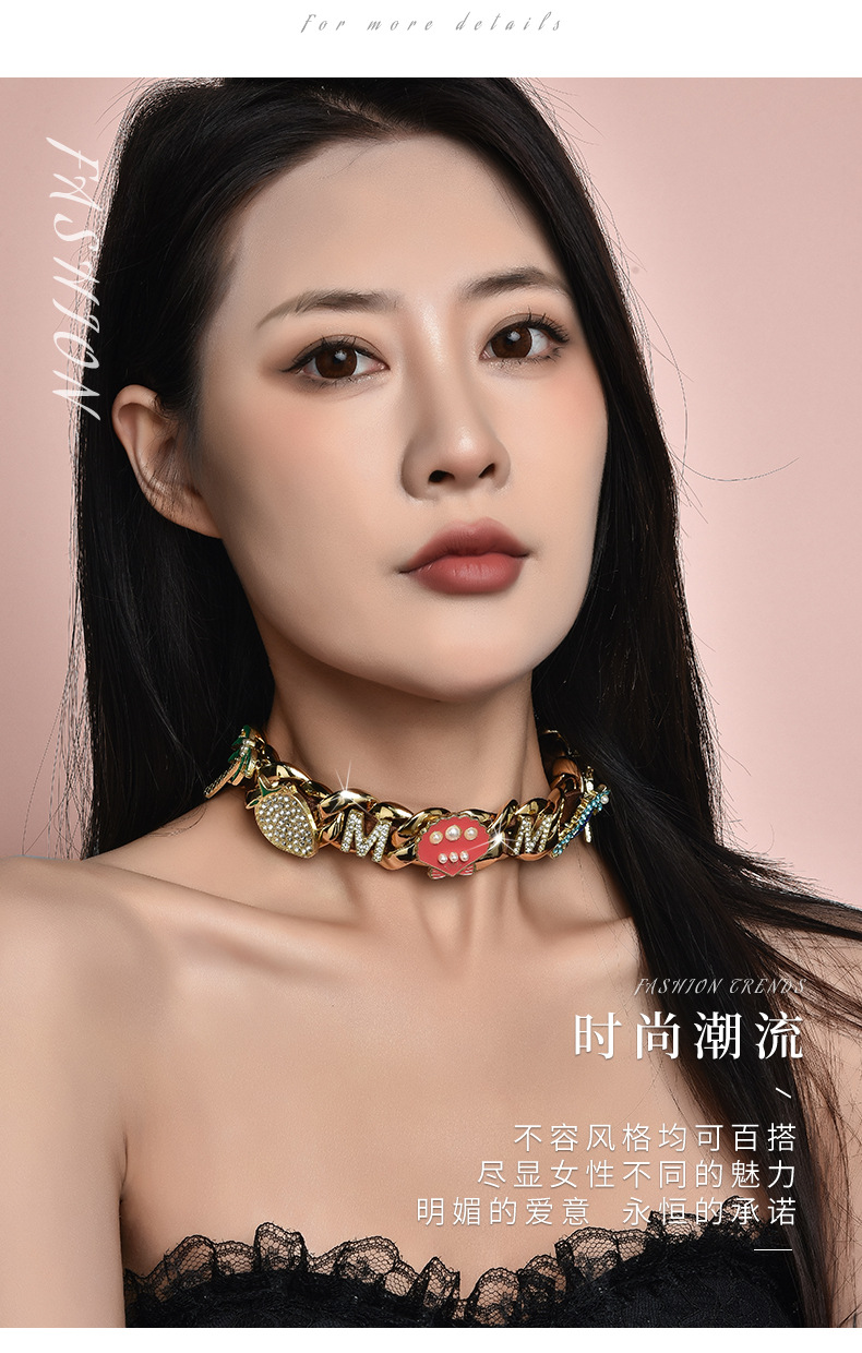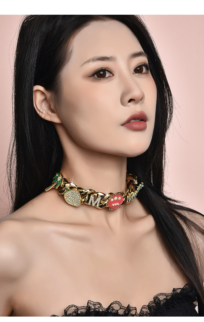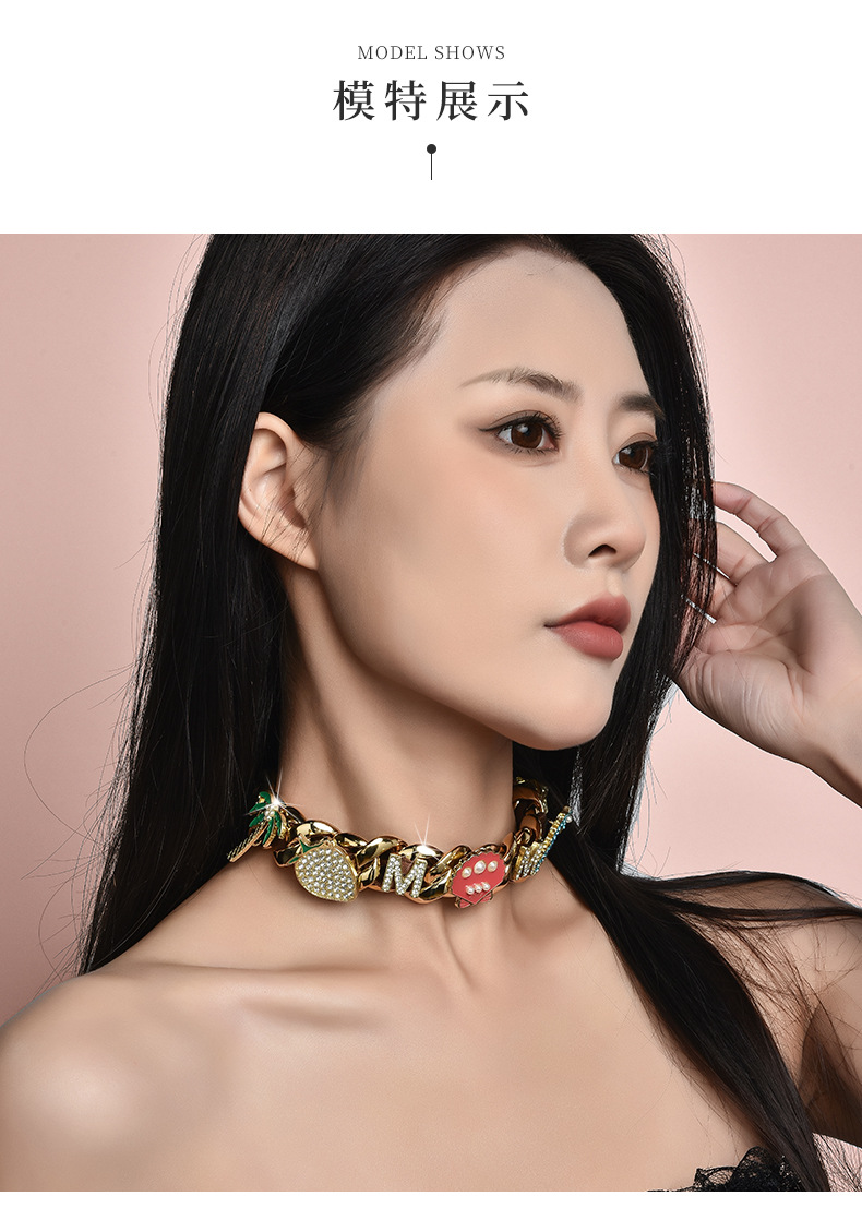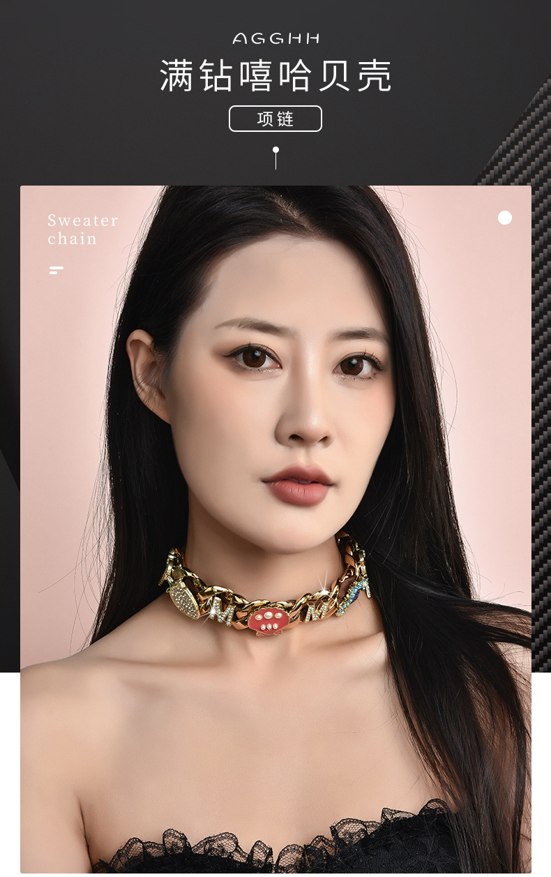 Factory direct fashion brand original full diamond trend rap hip-hop Joker neutral wind lovers necklace studio with the same style