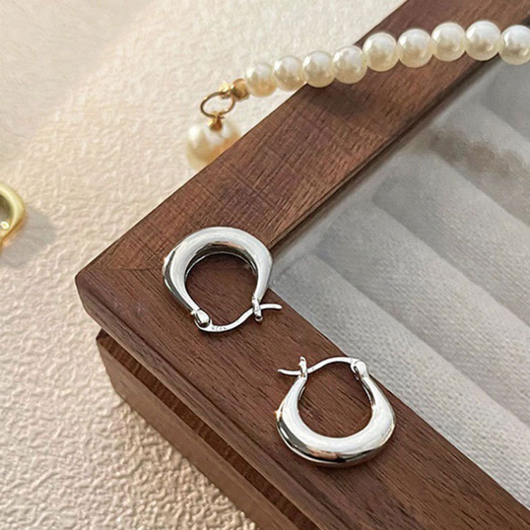 Jufeng earrings 925 tremella buckle cold wind High sense small fat ring earrings exaggerated earrings silver wholesale