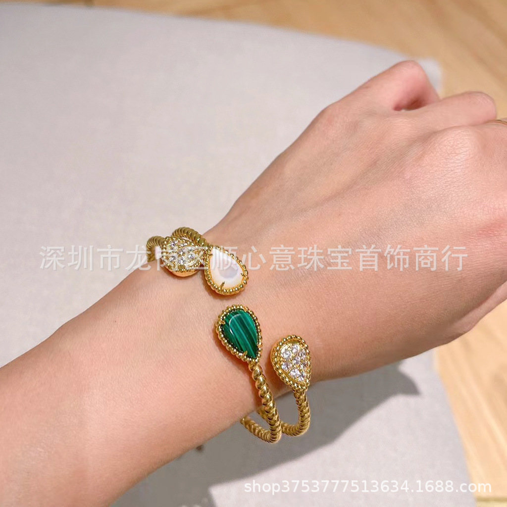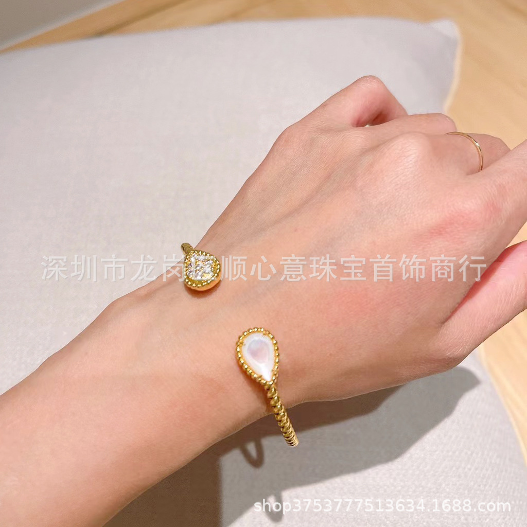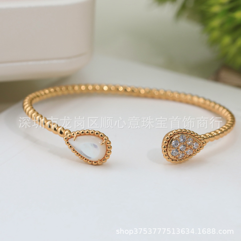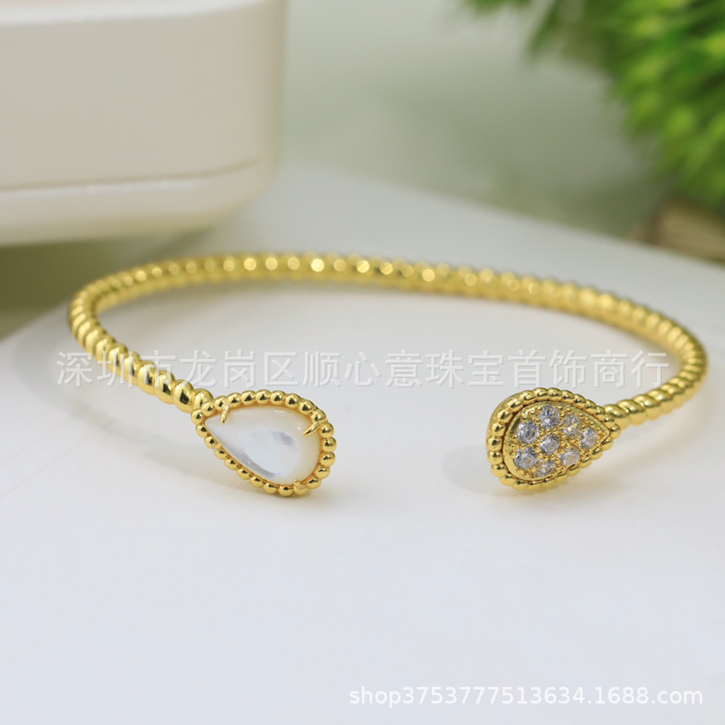 Drop-shaped bracelet 925 silver plating 18K gold chalcedony Fritillaria inlaid Diamond temperament elegant Net red wind drop-shaped bracelet