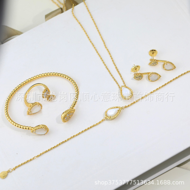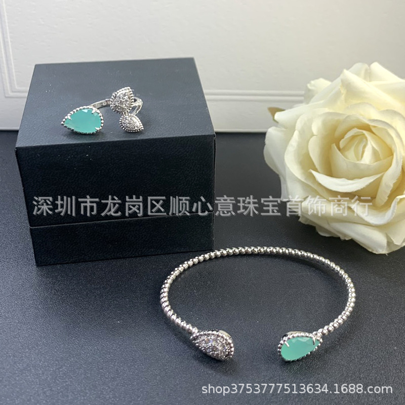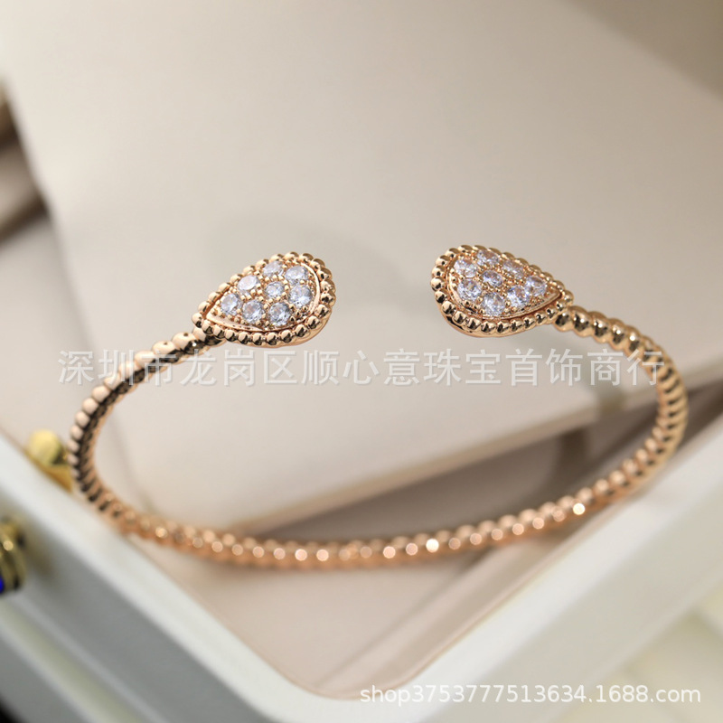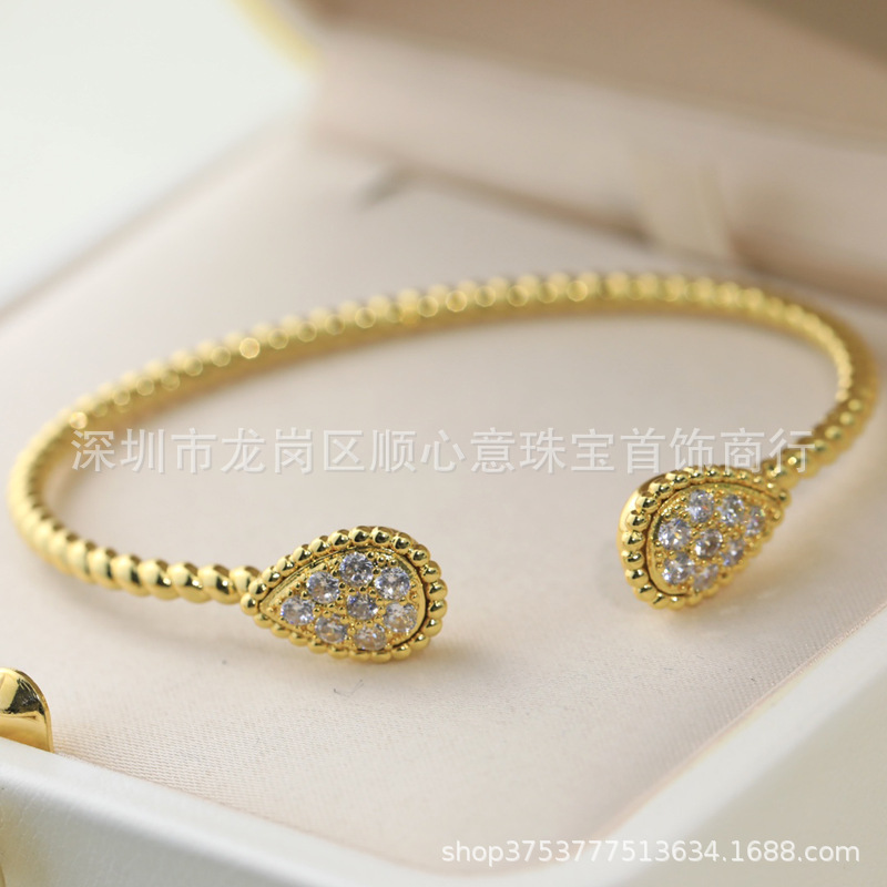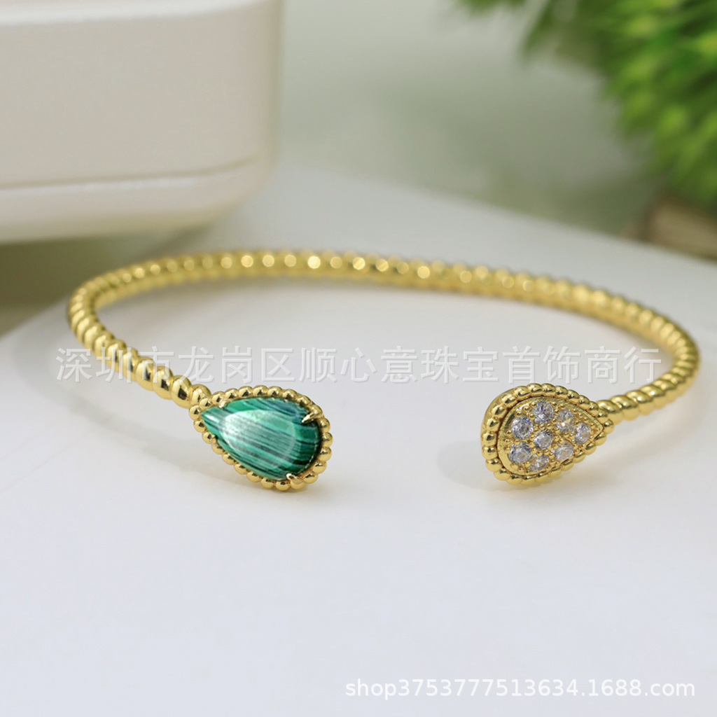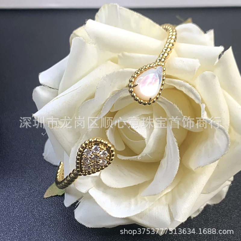 Drop-shaped bracelet 925 silver plating 18K gold chalcedony Fritillaria inlaid Diamond temperament elegant Net red wind drop-shaped bracelet