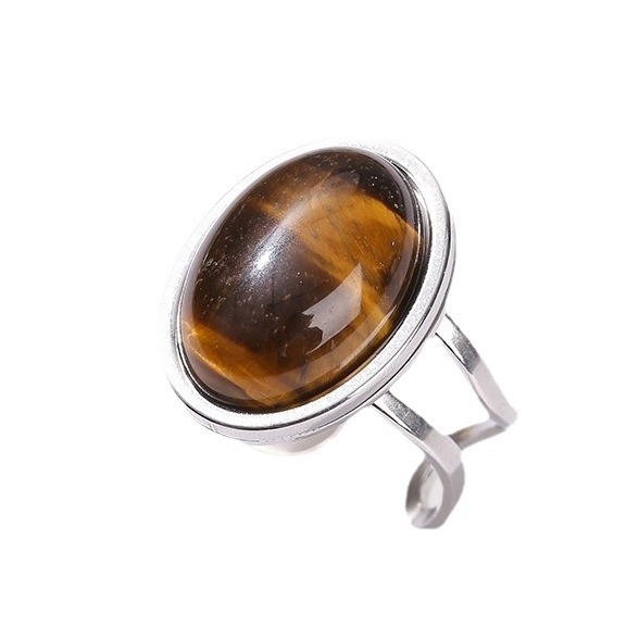 Color: Natural yellow tiger eye stone oval open titanium steel ring