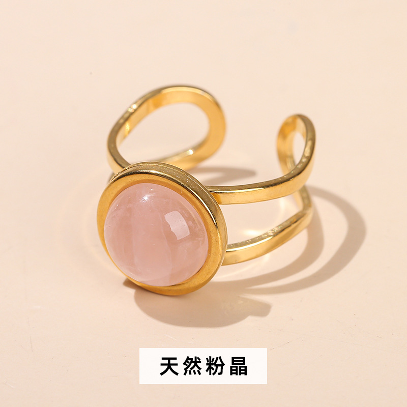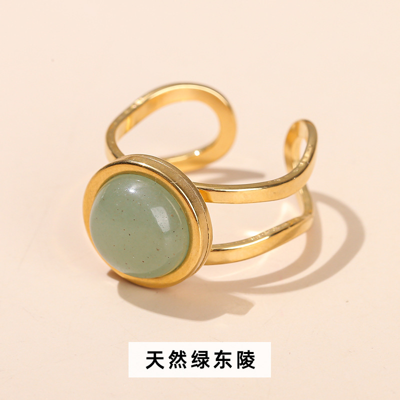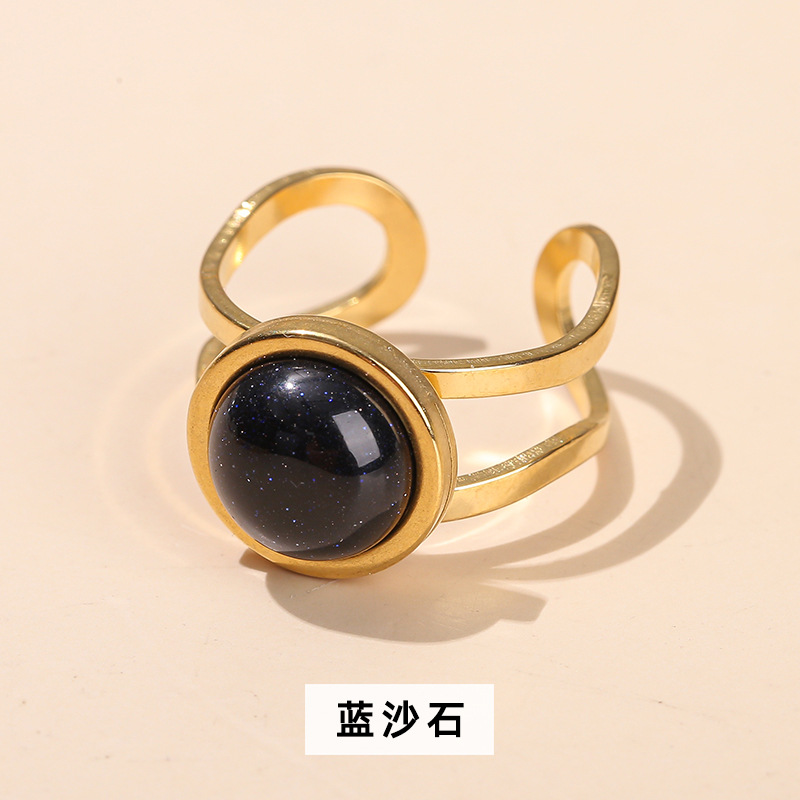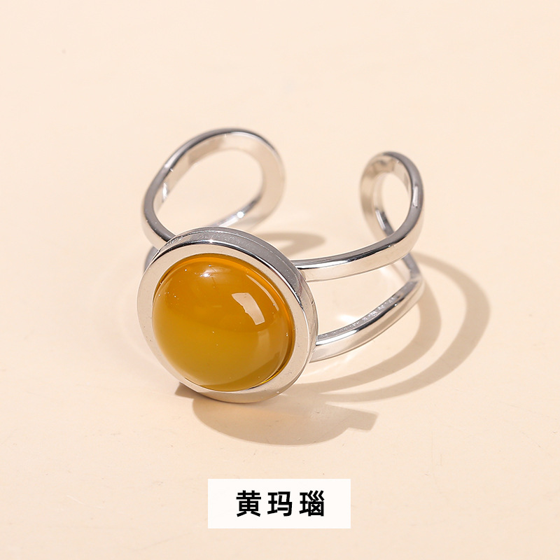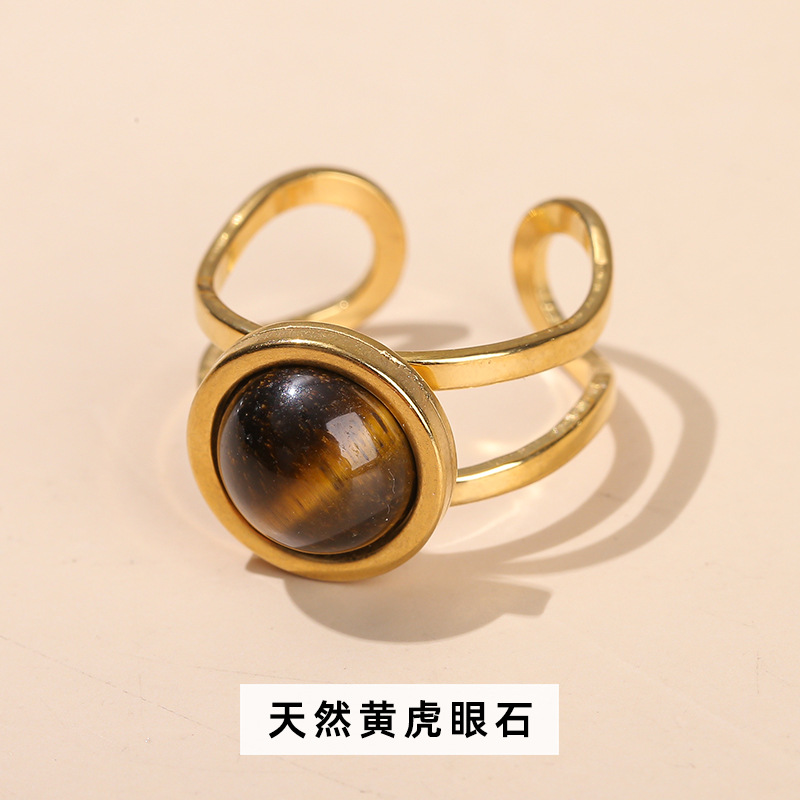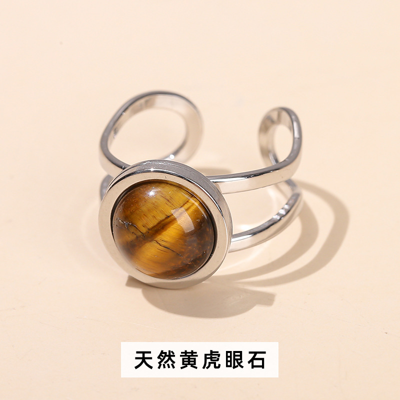 Color: Natural yellow tiger eye stone round open titanium steel ring