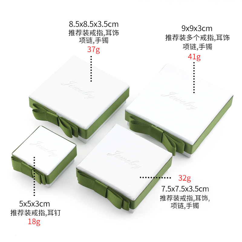 Specifications and models: Dark green bow necklace box on the side; 19 × 19 × 4cm