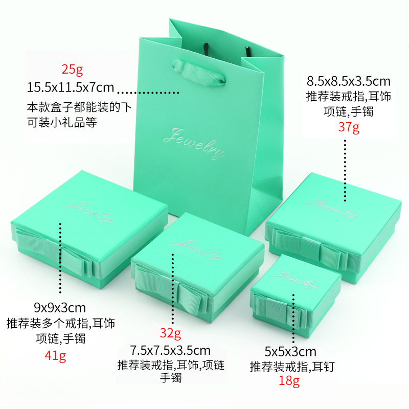 Specifications and models: Three-piece necklace box with dark green bow on the side; dark green handbag 23x7x21cm