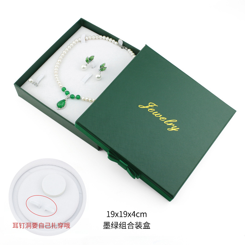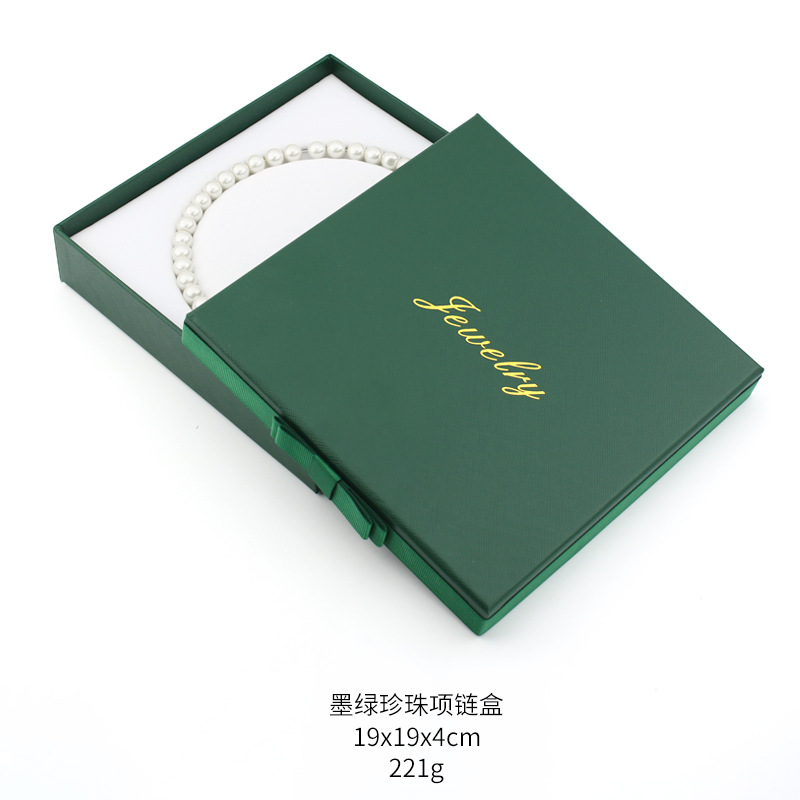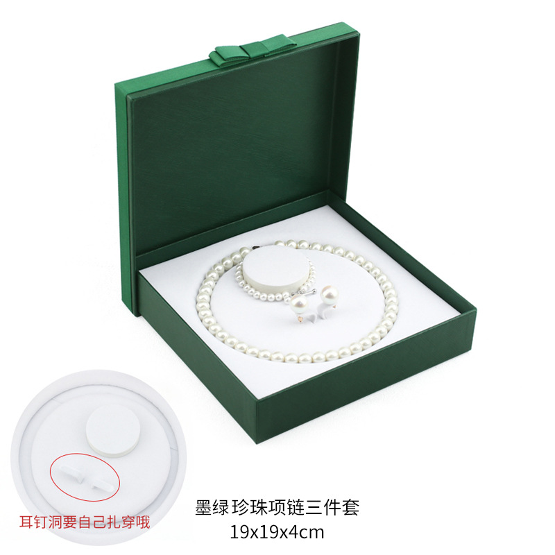 Specifications and models: Three-piece necklace box with dark green bow on the side; 19 × 19 × 4cm