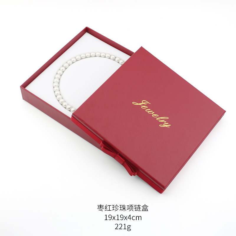 Specifications and models: Side bordeaux bow necklace box; 19 × 19 × 4cm