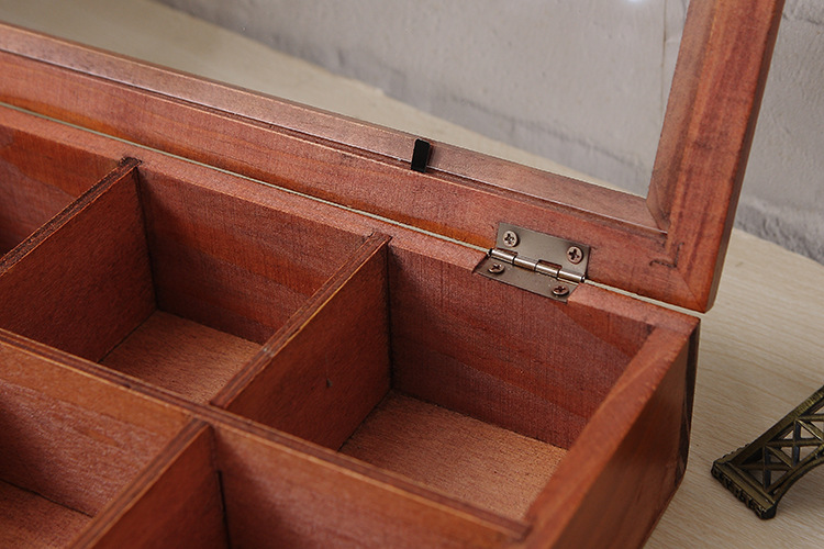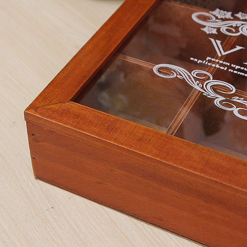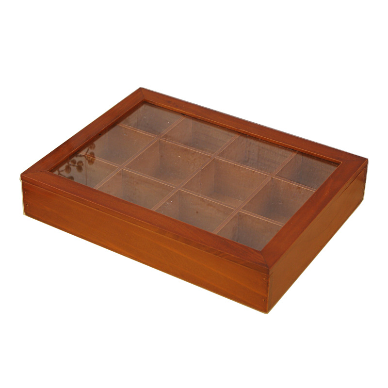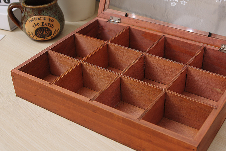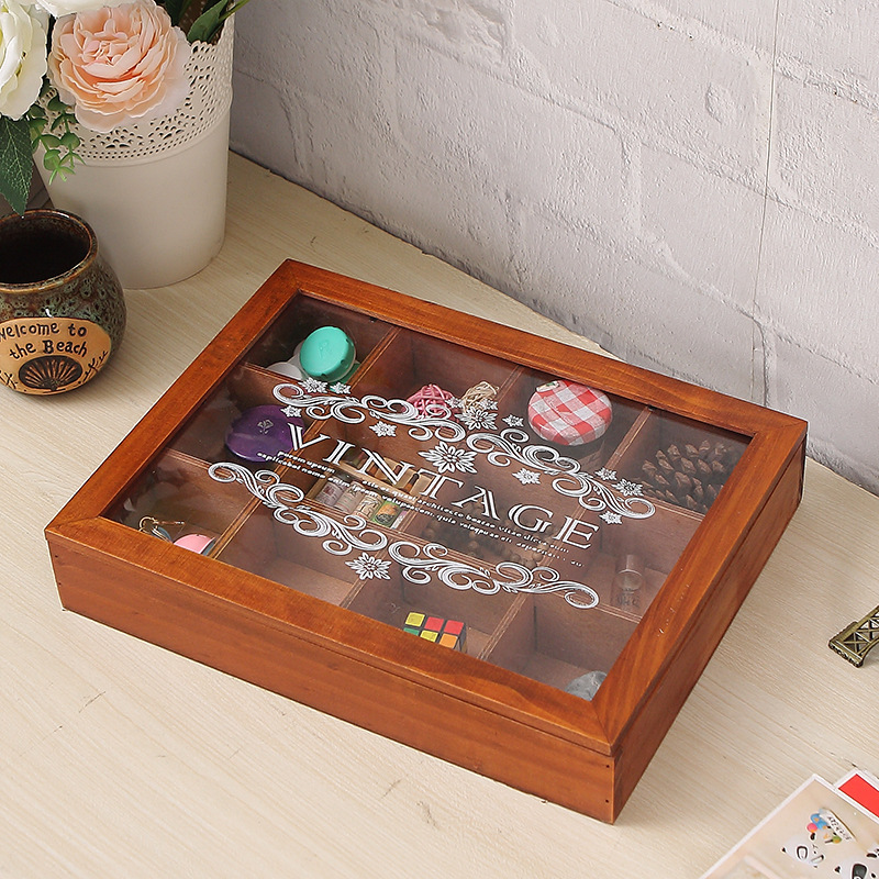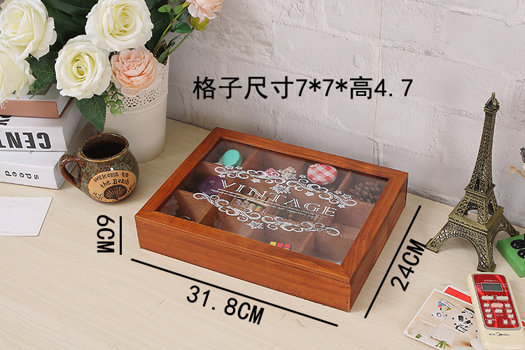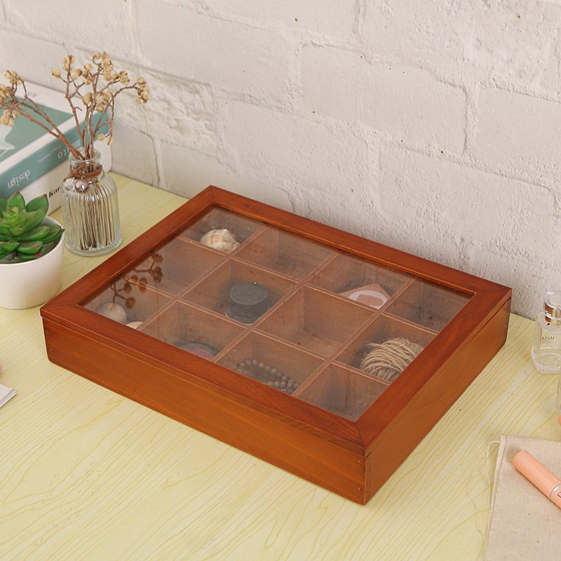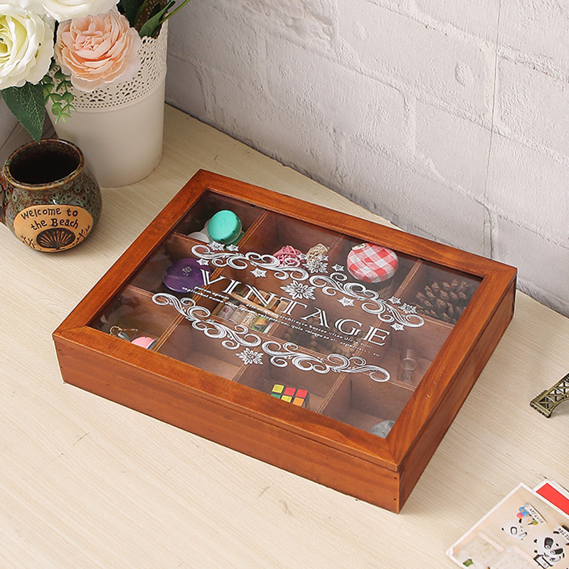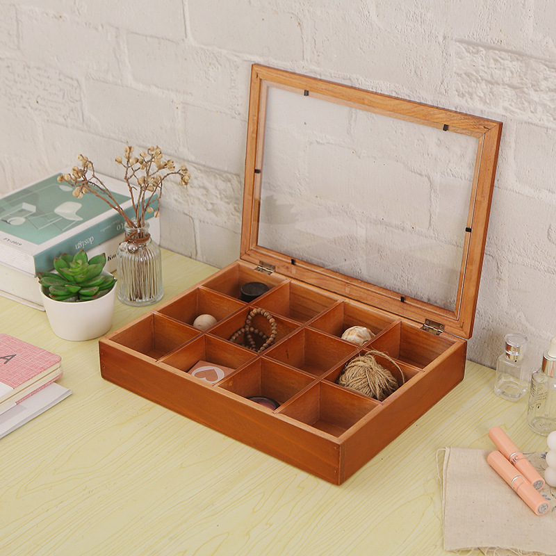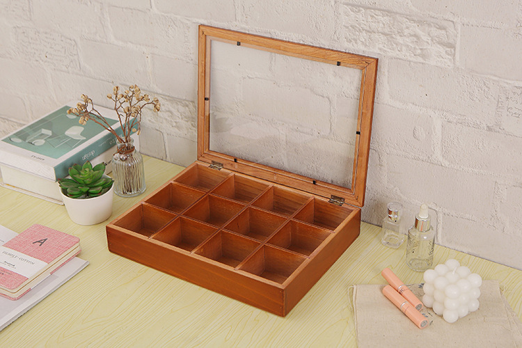 Vintage Wooden 12-cell Small Object Plaid Transparent Storage Box Acrylic Jewelry Display Box with Lid Storage Box