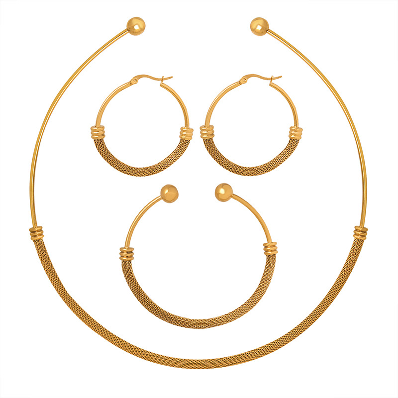 Jewelry three-piece set fashion trendy European and American exquisite collar elegant earrings all-match bracelet titanium steel plated 18K real gold